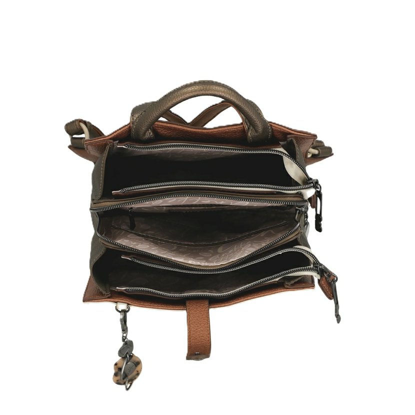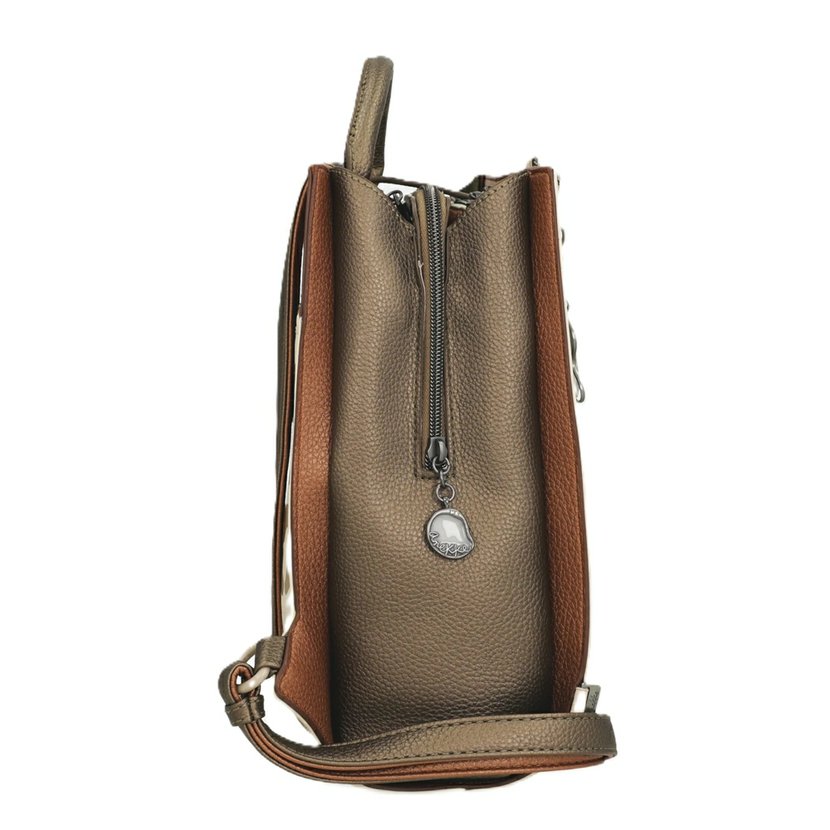 Rozměry: délka 25 - 25 cm, šířka 10 cm, výška 30 cm Barva: béžová / hnědá / měděná Materiál: umělá kůže (PU), podšívka 100% polyester