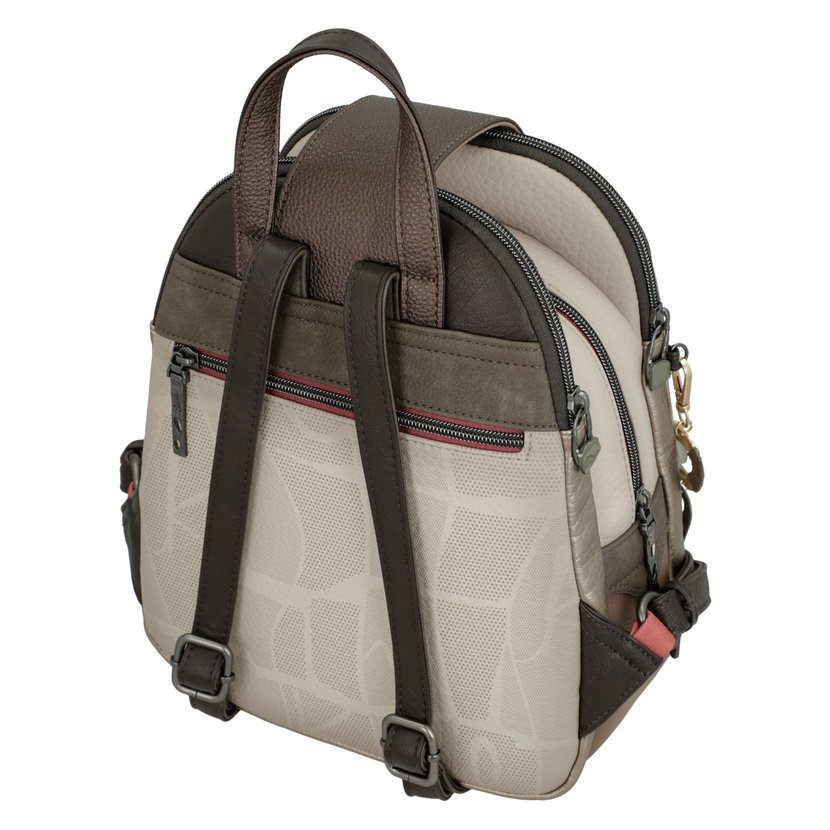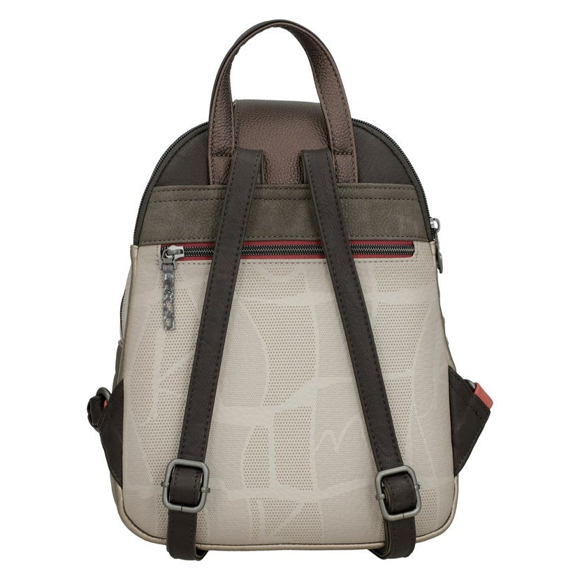Batoh má jedno ucho do ruky a nastavitelné popruhy na záda. Na zadní straně je kapsa na zip. Batoh má tři samostatné komory, každá se zapínáním na zip. Uvnitř batohu je kapsa na zip a dvě otevřené kapsičky. Batoh má v horní části malou klopnu s kovovým zapínáním. Batoh je balený v ochranném obalu.