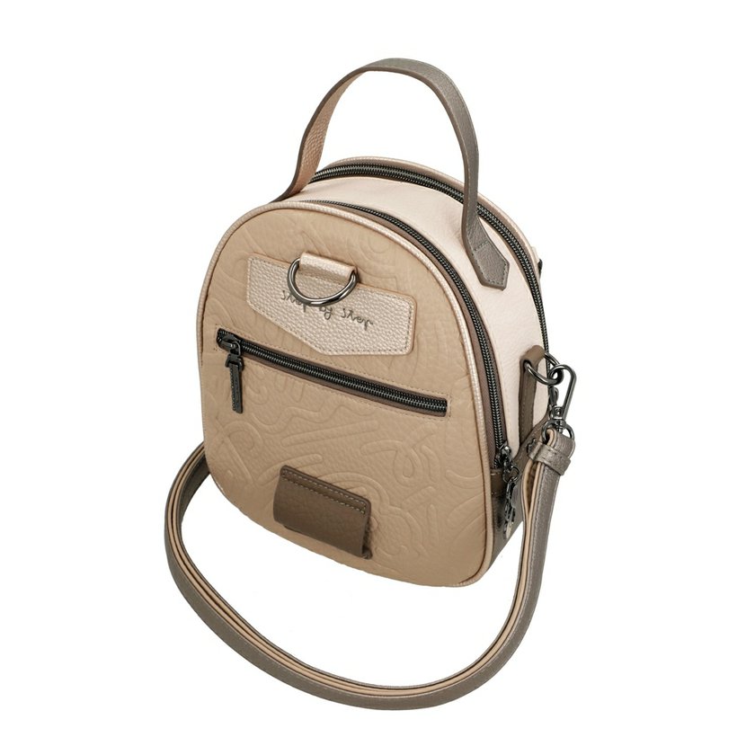 Menší batoh má popruhy na záda, které se ale dají odepnout a batoh nosit na rameni jako kaabelky. Batoh má na zádech kapsu na zip. Batoh má dvě komory. Každá komora má zapínání na zip. Uvnitř je kapsa na zip.Batoh je balený v ochranném obalu.