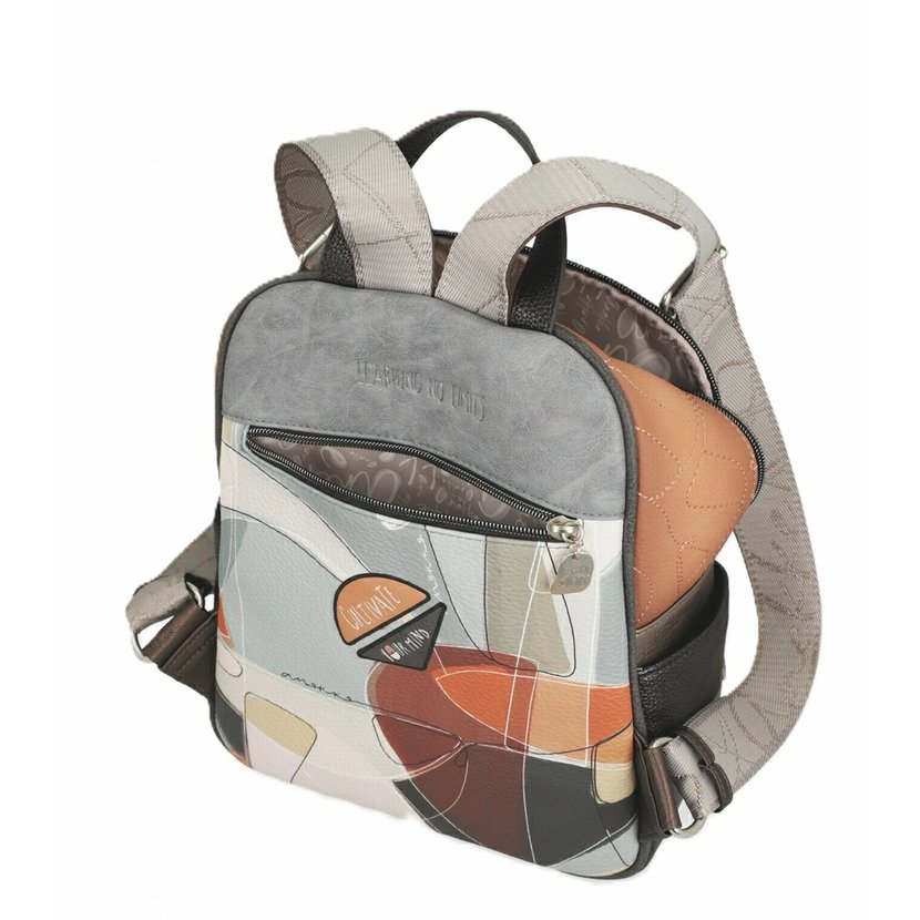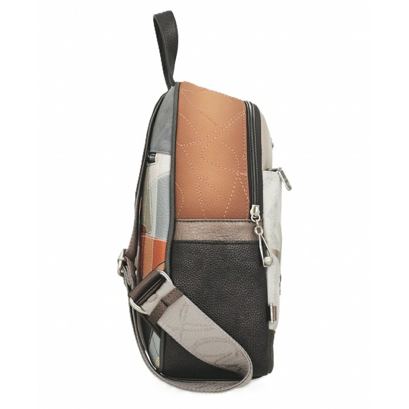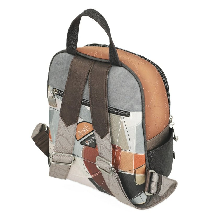 Elegantní batoh má jedno ucho do ruky a nastavitelné popruhy na záda. Na přední straně je kapsa s kolmým zipem, na zadní straně je další kapsa na zip. Na bocích jsou otevřené kapsy. Batoh má zapínání na zip. Uvnitř je kapsa na zip a otevřená kapsa. Batoh je balený v ochranném obalu.