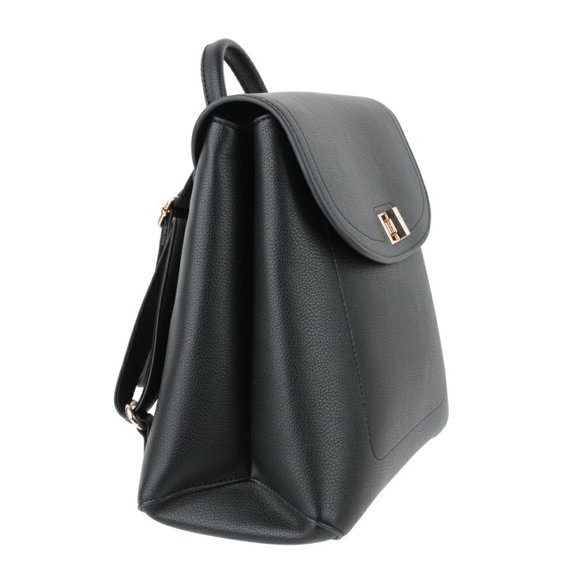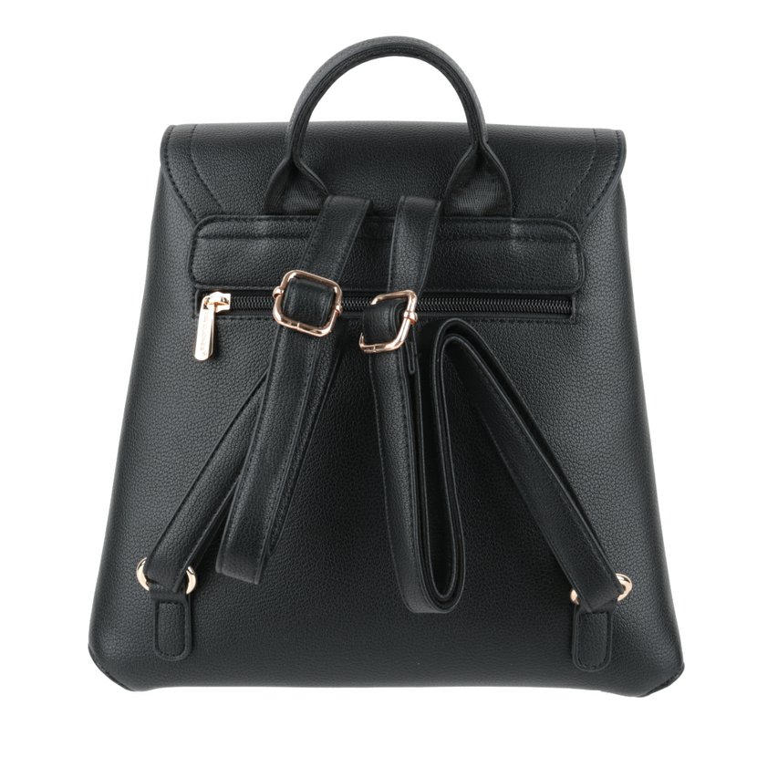 Batoh má jedno ucho do ruky a nastavitelné popruhy na záda. Na zadní straně je kapsa na zip. Batoh má klopnu s kovovým otočným zapínáním. Vnitřní prostor batohu má dvě komory. Přední komora je otevřená, zadní komora má zapínání na zip. V přední komoře je otevřená kapsa, v zadní komoře je kapsa na zip. Obě komory mají pevnou podšívku. Na dně batohu jsou ochranné kovové cvoky. Kovové komponenty mají zlatou barvu. Batoh má pevný tvar.