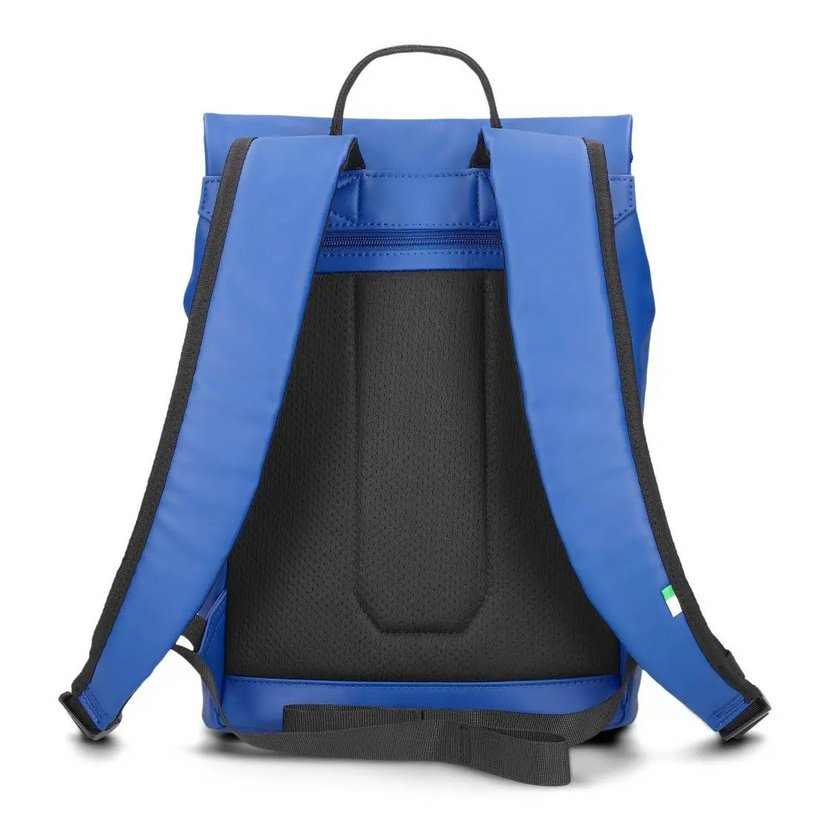Batoh má jedno krátké ucho do ruky a dva nastavitelné a vypolstrované popruhy na záda. Záda batohu jsou vyztužená a vyměkčená, díky čemuž se batoh dobře nosí a dobře drží tvar. Batoh má na zádech kapsu na zip. Na přední straně je další kapsa s kolmým zipem, ve které je karabinka na klíče na dlouhé šňůrce. Horní část batohu je překlopená dopředu a zapíná se na magnety skryté pod materiálem a přezku.