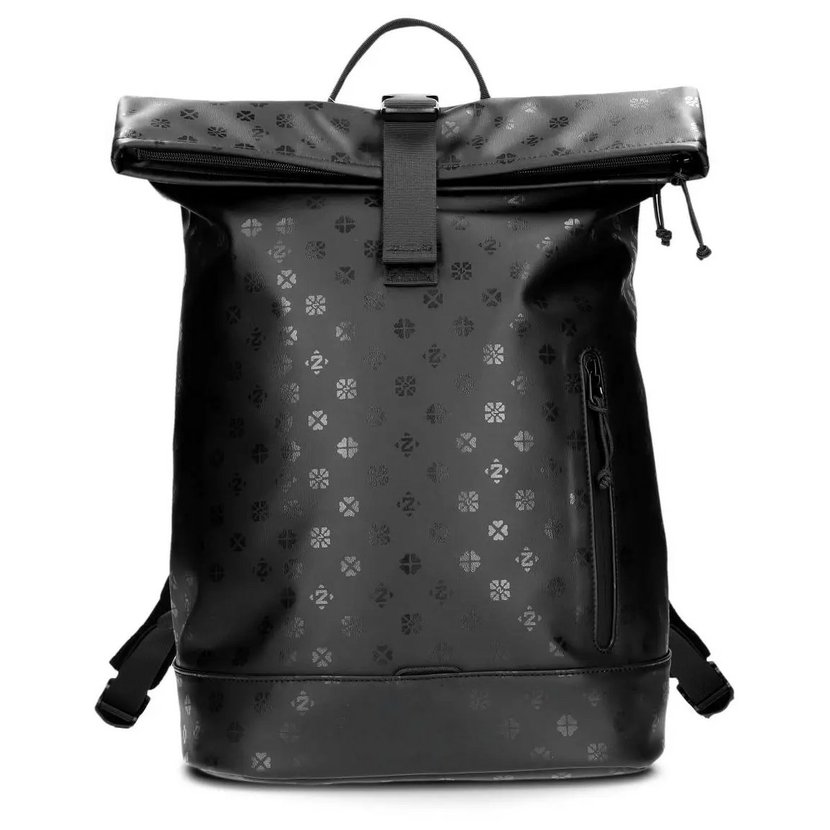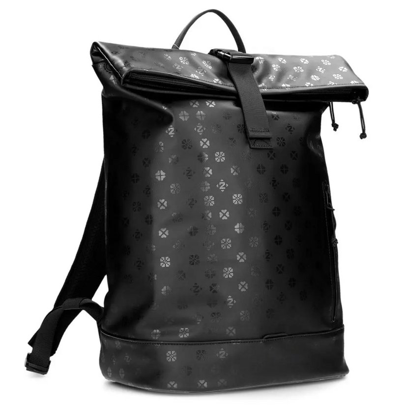 Mimořádně propracovaný batoh má jedno krátké ucho do ruky a dva nastavitelné a vypolstrované popruhy na záda. Záda batohu jsou vyztužená a vyměkčená, díky čemuž se batoh dobře nosí a dobře drží tvar. Batoh má na zádech velkou kapsu na zip. Na přední straně je kapsa na zip s kolmým zipem. Uvnitř kapsy je karabinka na klíče. Horní část batohu je překlopená dopředu a zapíná se na přezku.