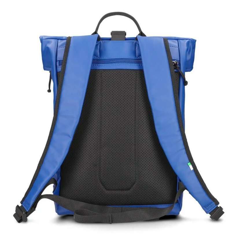 Mimořádně propracovaný batoh má jedno krátké ucho do ruky a dva nastavitelné a vypolstrované popruhy na záda. Záda batohu jsou vyztužená a vyměkčená, díky čemuž se batoh dobře nosí a dobře drží tvar. Batoh má na zádech velkou kapsu na zip. Na přední straně je kapsa na zip s kolmým zipem. Uvnitř kapsy je karabinka na klíče. Horní část batohu je překlopená dopředu a zapíná se na přezku.