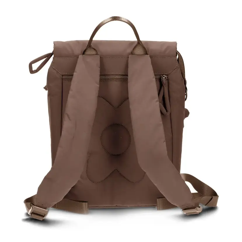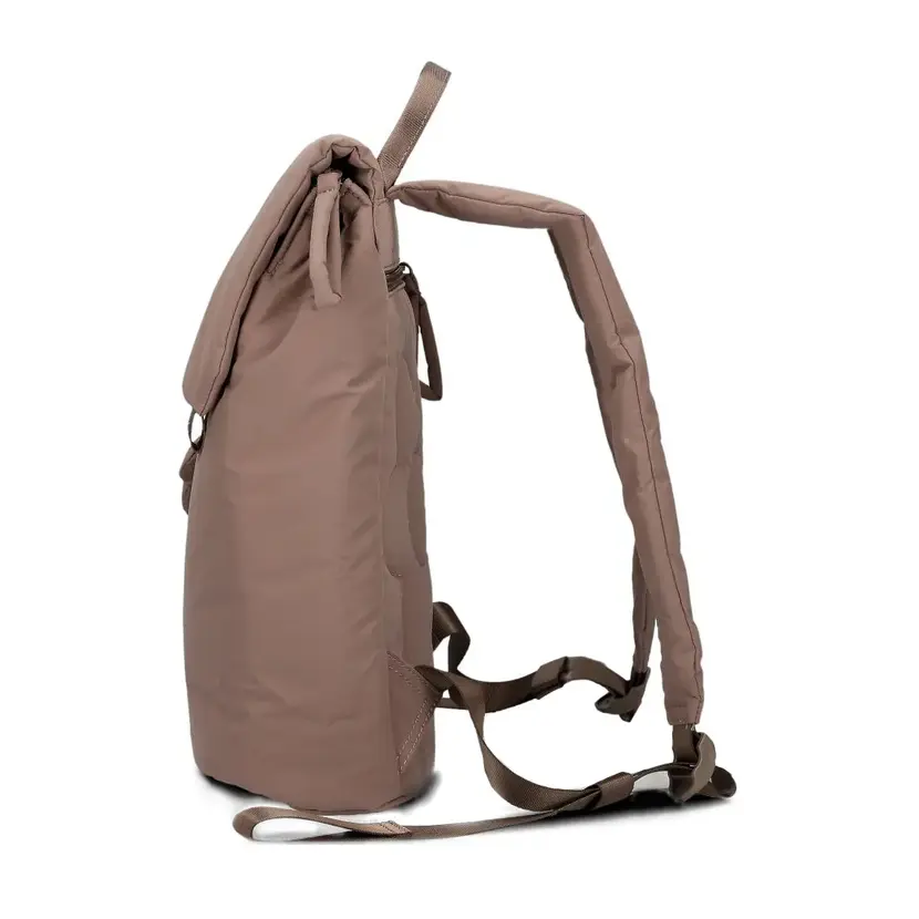 Moderní dámský batoh kombinuje hravou lehkost s promyšlenou funkčností. Tento batoh je vyroben z vysoce kvalitního recyklovaného polyesteru a nabízí nejen elegantní design, ale také praktické funkce jako je vypolstrovaná kapsa na notebook. Materiál batohu je vycpaný, působí tak dojem "péřové bundy". Batoh má jedno krátké ucho do ruky a dva nastavitelné a vyměkčené popruhy na záda. Batoh má vpředu i vzadu kapsy na zip. Horní část batohu je překlopená dopředu a zapíná se na magnety skryté pod materiálem. Batoh má zapínání na zip.