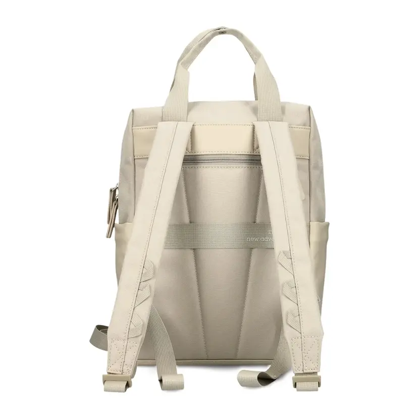 Nádherný a propracovaný batoh má dvě krátká ucha do ruky, která se dají sepnout drukem, a dva nastavitelné a vyměkčené popruhy na záda. Batoh má vpředu skrytou kapsu se zapínáním na zip. V kapse je poutko na klíče. Zadní strana batohu je vyztužená. Na zádech je velká kapsa na zip a popruh, pomocí kterého lze batoh nasadit na držadlo kufru. Na bocích batohu jsou otevřené kapsy na menší láhev s vodou.
