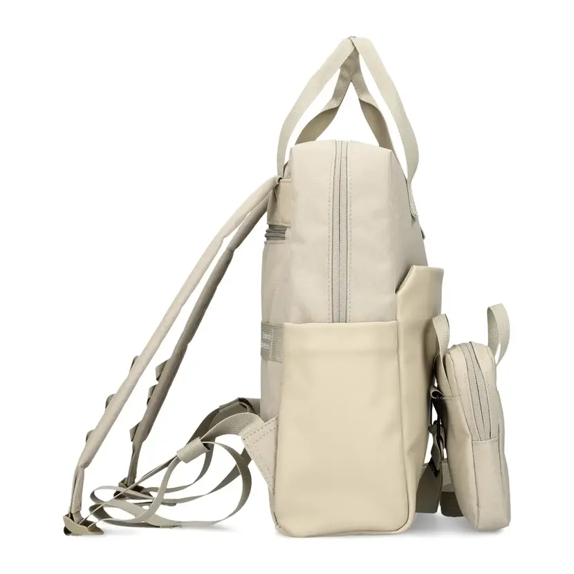 Batoh je zhotovený z kombinace polyesteru (PE) a umělé kůže (PU). Dno batohu, boční kapsy a spodní přední díl jsou zhotovené z nepromokavé umělé kůže (PU), ostatní části batohu jsou z polyesteru (PE).