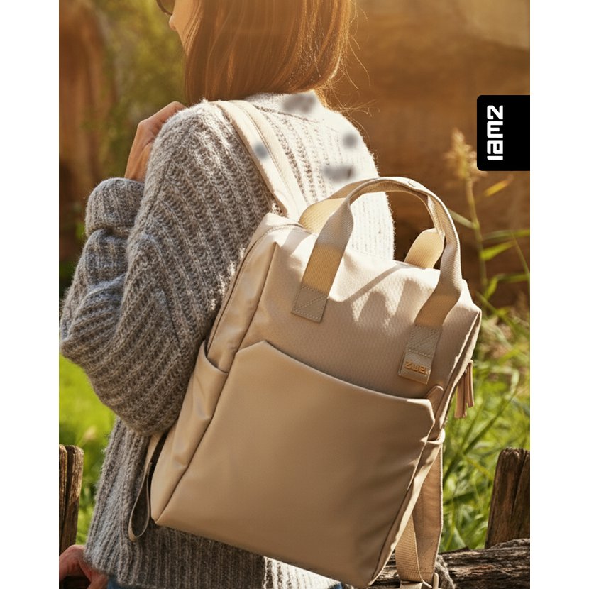 Batoh má zapínání na zip. Uvnitř batohu je kapsa na notebook o rozměrech max. 30 x 21 cm (velikost displeje cca 13"). Uvnitř batohu jsou dále dvě otevřené kapsy a kapsa na zip. K batohu je samostatná etue o velikosti 10 x 16 cm se zapínáním na zip. Etue lze použít např. jako pouzdro na mobil. Etui lze nosit uvnitř batohu nebo ji lze zacvaknout do jednoho z poutek na ramenním popruhu, příp. nosit samostatně. U batohu je také dlouhá šňůra na klíče. Batoh je perfektní volbou pro nošení do města - má ideální velikost, není příliš široký a dobře sedí na zádech. Novinka v kolekci ZWEI!