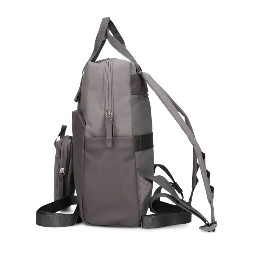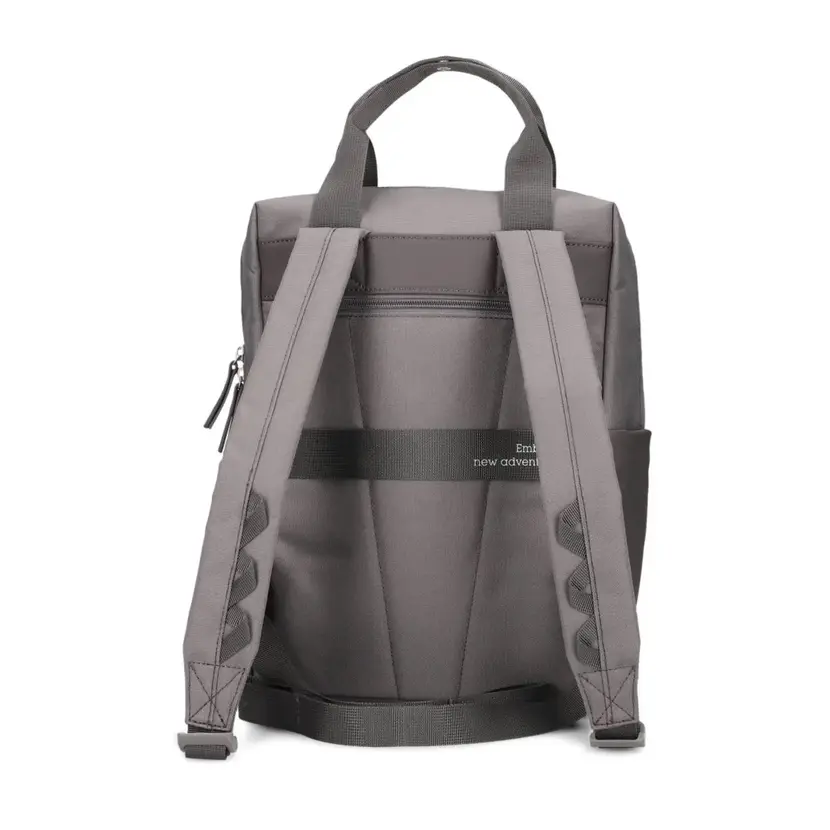 Nádherný a propracovaný batoh má dvě krátká ucha do ruky, která se dají sepnout drukem, a dva nastavitelné a vyměkčené popruhy na záda. Batoh má vpředu skrytou kapsu se zapínáním na zip. V kapse je poutko na klíče. Zadní strana batohu je vyztužená. Na zádech je velká kapsa na zip a popruh, pomocí kterého lze batoh nasadit na držadlo kufru. Na bocích batohu jsou otevřené kapsy na menší láhev s vodou.