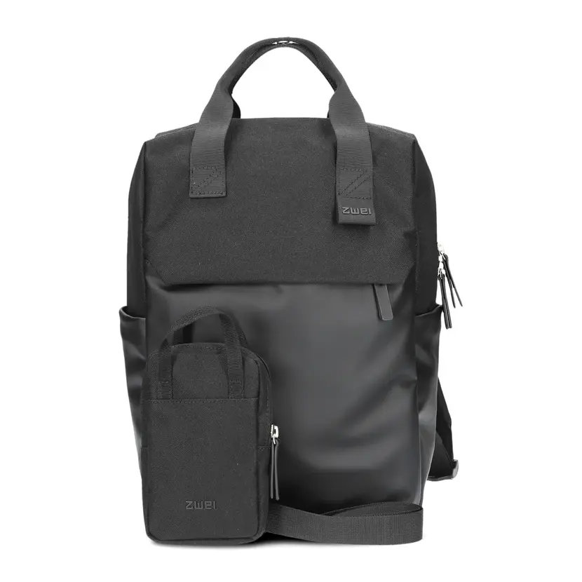 Batoh má zapínání na zip. Uvnitř batohu je kapsa na notebook o rozměrech max. 30 x 21 cm (velikost displeje cca 13"). Uvnitř batohu jsou dále dvě otevřené kapsy a kapsa na zip. K batohu je samostatná etue o velikosti 10 x 16 cm se zapínáním na zip. Etue lze použít např. jako pouzdro na mobil. Etui lze nosit uvnitř batohu nebo ji lze zacvaknout do jednoho z poutek na ramenním popruhu, příp. nosit samostatně. U batohu je také dlouhá šňůra na klíče. Batoh je perfektní volbou pro nošení do města - má ideální velikost, není příliš široký a dobře sedí na zádech. Novinka v kolekci ZWEI!