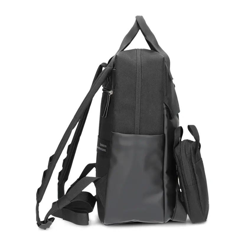 Batoh je zhotovený z kombinace polyesteru (PE) a umělé kůže (PU). Dno batohu, boční kapsy a spodní přední díl jsou zhotovené z nepromokavé umělé kůže (PU), ostatní části batohu jsou z polyesteru (PE).
