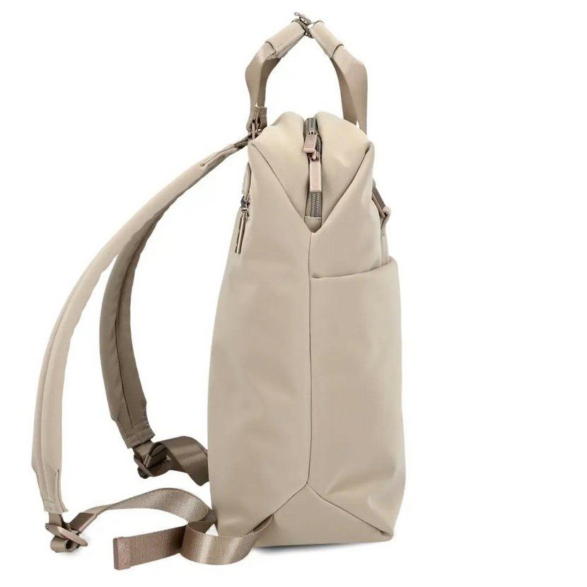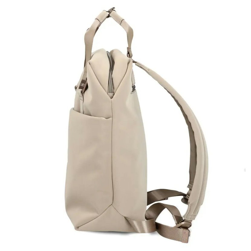 Moderní dámský batoh, který kombinuje minimalistický design s maximální funkčností. Tento stylový batoh z měkké a hladké syntetické kůže nabízí nejen velkorysý objem 10 litrů, ale také promyšlené detaily, jako je např. polstrovaná kapsa na 14" notebook. Materiál batohu je vycpaný, působí tak dojem "péřové bundy". Batoh má dvě krátká ucha do ruky, která se dají spojit drukem, a dva nastavitelné a vyměkčené popruhy na záda. Batoh má vpředu i vzadu velké kapsy na zip. Batoh má zapínání na zip.