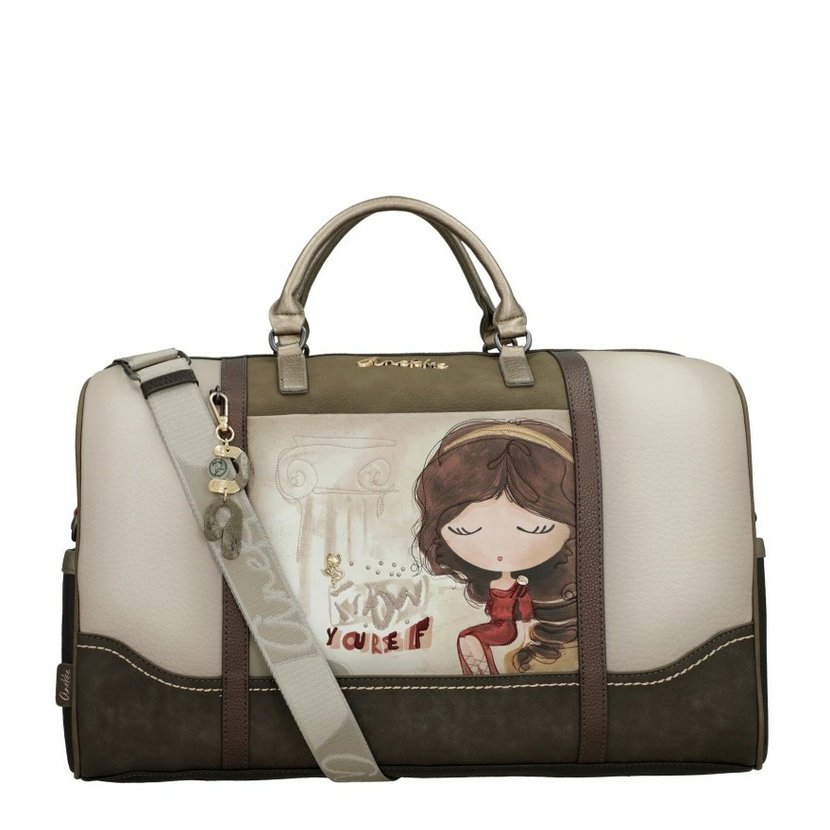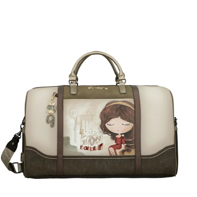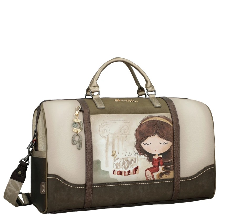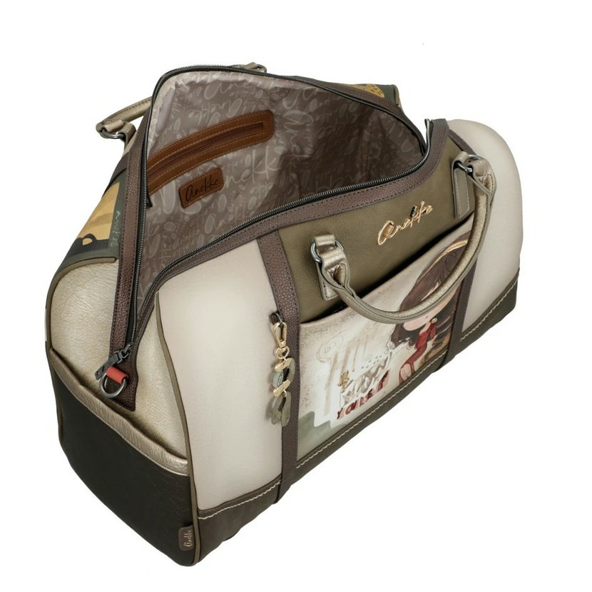 Cestovní taška má dvě ucha do ruky a odnímatelný a nastavitelný popruh na rameno. Na přední i zadní straně jsou kapsy na zip. Na zadní straně dole je malý zip, po jehož rozepnutí se dá taška nasadit na madlo kufru. Taška má zapínání na zip. Uvnitř je kapsa na zip a dvě otevřené kapsičky. Taška je balená v ochranném obalu.