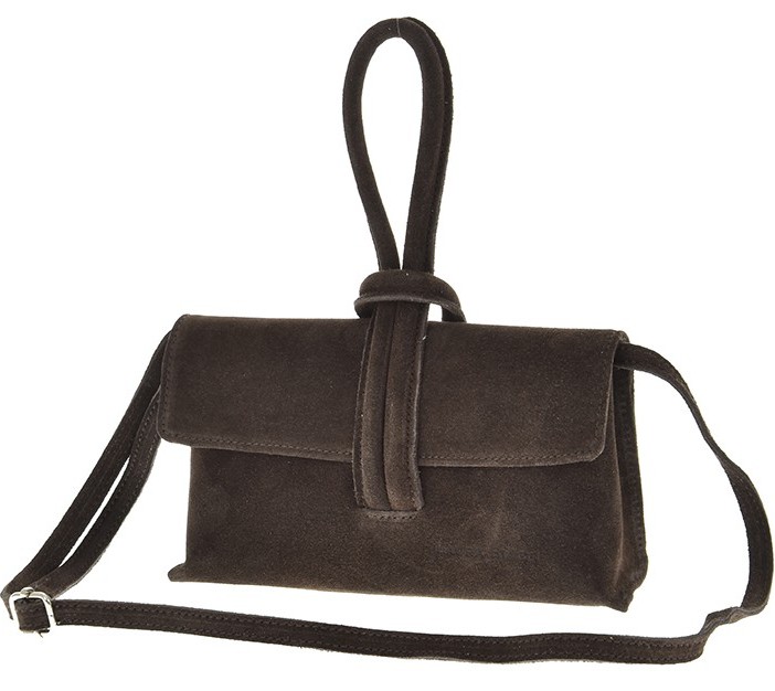 Menší kožená kabelka je vyrobena z kvalitní italské kůže. Kabelka má pevný tvar. Kabelka má ucho do ruky a dlouhý, nastavitelný a odnímatelný řemínek přes rameno. Kabelku tak lze nosit v ruce jako psaníčko nebo šikmo přes rameno jako crossbody. Kabelka má malou klopnu. Uvnitř kabelky je světlá podšívka, kapsa na zip a otevřená kapsa. Kovové komponenty mají stříbrnou barvu.