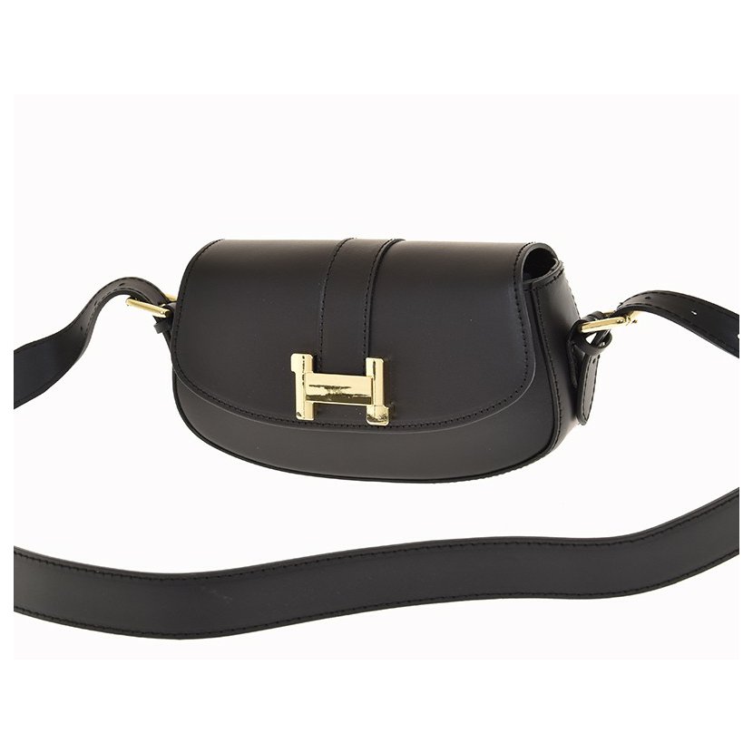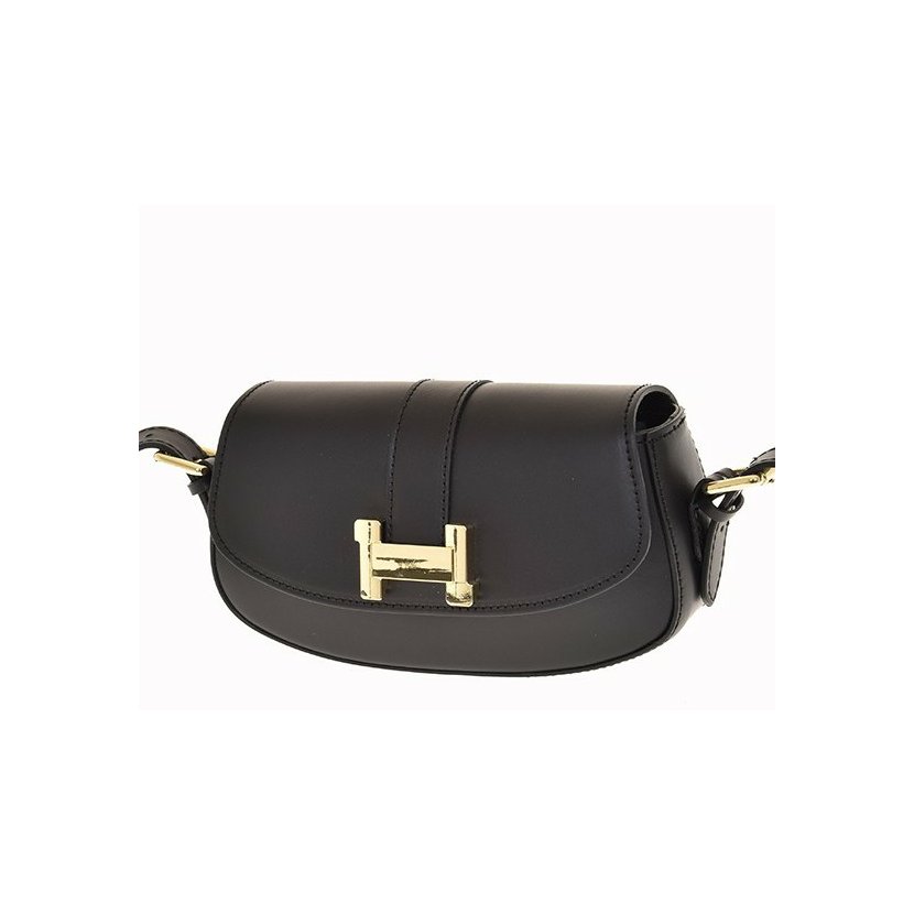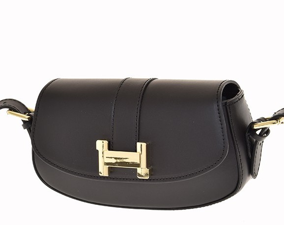 Kožená kabelka je vyrobena z kvalitní, hladké, italské kůže. Kabelka má pevný tvar. Kabelka má dlouhý, nastavitelný a odnímatelný popruh, takže ji lze nosit v ruce jako psaníčko nebo šikmo přes rameno jako crossbody. Kabelka má klopnu se zapínáním na magnet. Pod klopnou je zapínání na zip. Uvnitř kabelky je světlá podšívka a kapsa na zip. Kovové komponenty mají zlatou barvu.
