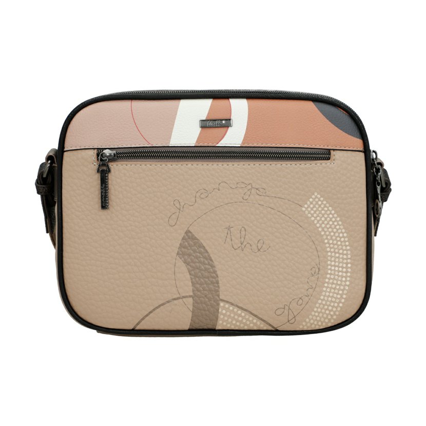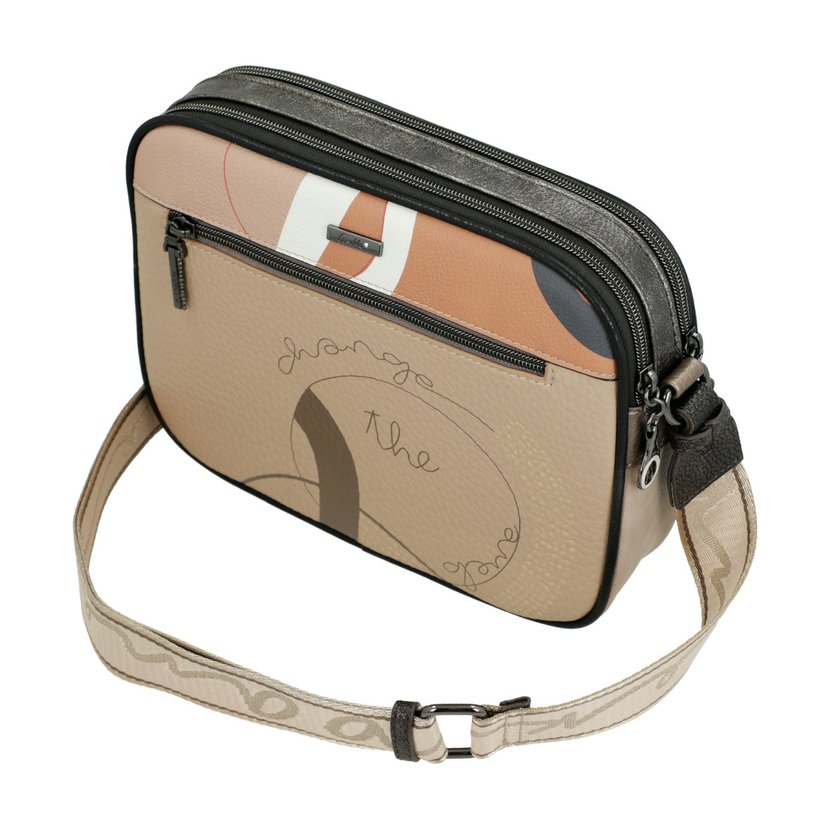 Kabelka má dlouhý popruh přes rameno a lze ji tak nosit jako crossbody. Na přední i zadní straně jsou kapsy na zip. Kabelka má dvě samostatné komory, každá se zapínáním na zip. Uvnitř kabelky je kapsa na zip a dvě otevřené kapsičky. Kabelka je balená v ochranném obalu.