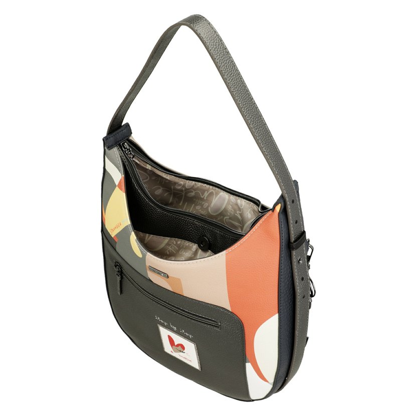 Kabelka má jedno ucho na rameno. Na zadní straně je kapsa na zip. Kabelka má tři komory. Přední a zadní komora se zapínají na magnet, prostřední komora má zapínání na zip. Uvnitř kabelky je kapsa na zip a dvě otevřené kapsy. Kabelka je balená v ochranném obalu.