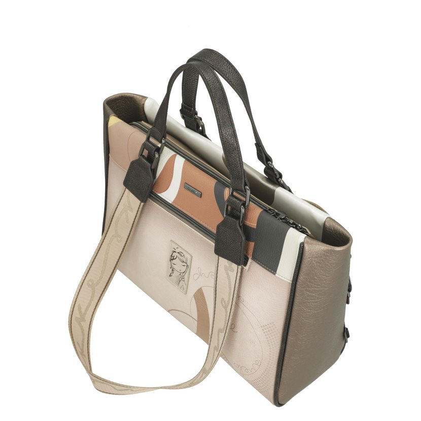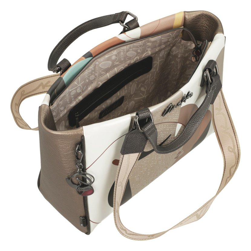 Kabelka má dvě krátká ucha do ruky a dvě dlouhá ucha na rameno. Na zadní straně je kapsa na zip. Kabelka má zapínání na zip. Uvnitř kabelky je kapsa na zip a dvě otevřené kapsy. Kabelka je balená v ochranném obalu.
