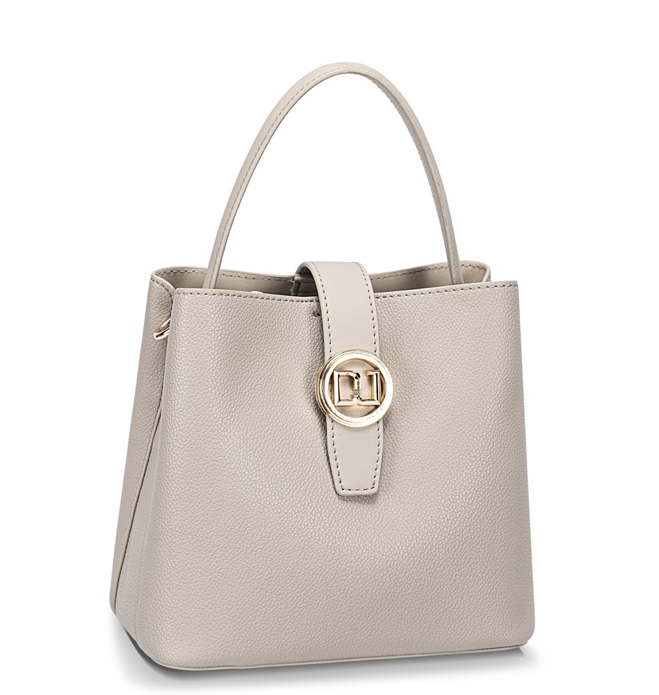 Kabelka má jedno ucho do ruky a dlouhý, nastavitelný popruh. Kabelku tak lze nosit v ruce nebo šikmo přes rameno jako crossbody. Na zadní straně je otevřená kapsička. Kabelka má malou klopnu se zapínáním na magnet. Kabelka má tři samostatné komory. Přední a zadní komora mají zapínání na magnet, prostřední komora má zapínání na zip. Uvnitř kabelky je pevná podšívka, kapsa na zip a otevřená kapsa. Na dně kabelky jsou kovové ochranné cvoky. Kovové komponenty mají zlatou barvu. Kabelka má pevný tvar.