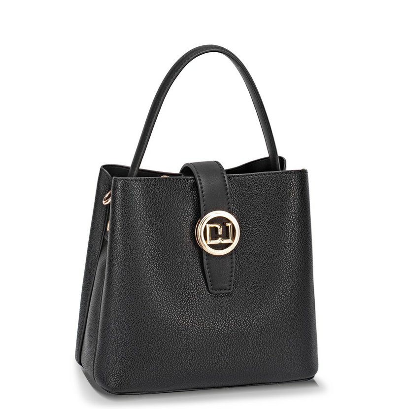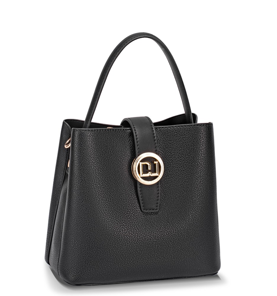 Kabelka má jedno ucho do ruky a dlouhý, nastavitelný popruh. Kabelku tak lze nosit v ruce nebo šikmo přes rameno jako crossbody. Na zadní straně je otevřená kapsička. Kabelka má malou klopnu se zapínáním na magnet. Kabelka má tři samostatné komory. Přední a zadní komora mají zapínání na magnet, prostřední komora má zapínání na zip. Uvnitř kabelky je pevná podšívka, kapsa na zip a otevřená kapsa. Na dně kabelky jsou kovové ochranné cvoky. Kovové komponenty mají zlatou barvu. Kabelka má pevný tvar.