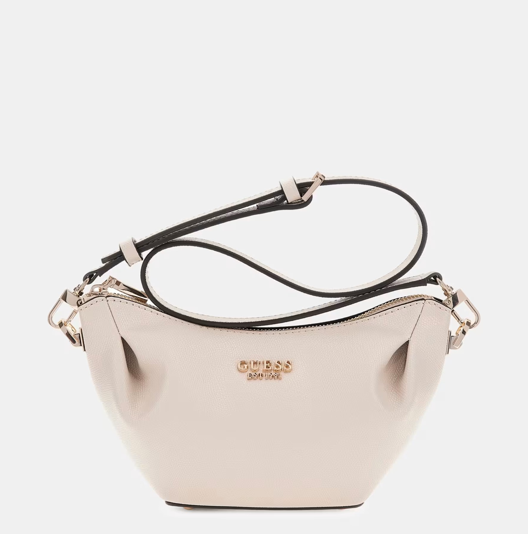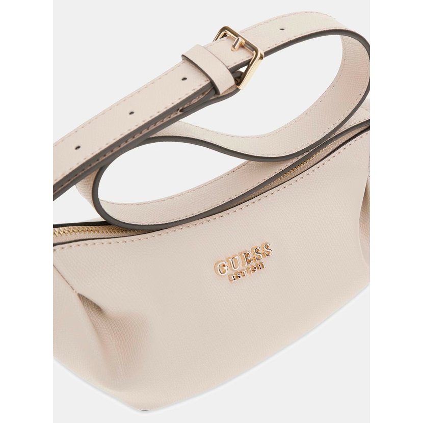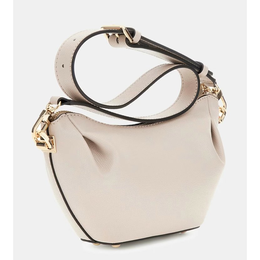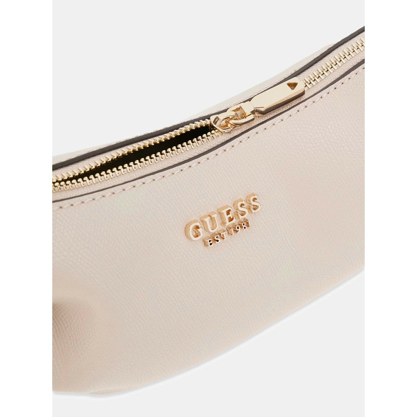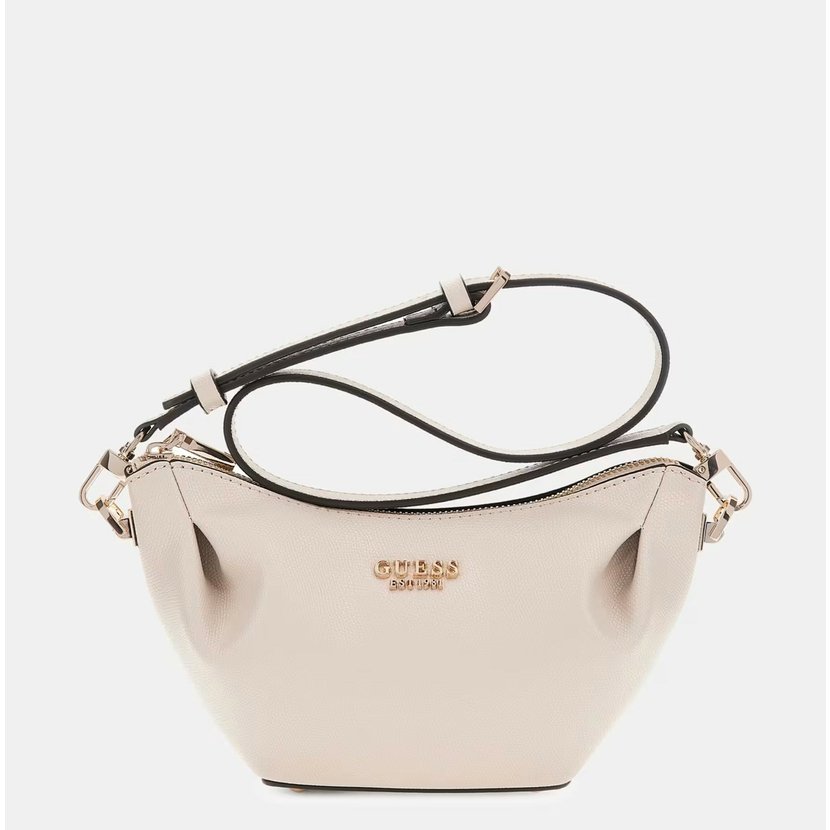 Kabelka má nastavitelný a odnímatelný popruh a lze ji tak nosit šikmo přes rameno jako crossbody. Kabelka má zapínání na zip. Kovové komponenty mají světle zlatou barvu. Ke kabelce je ochranný textilní pytlík s logem Guess.