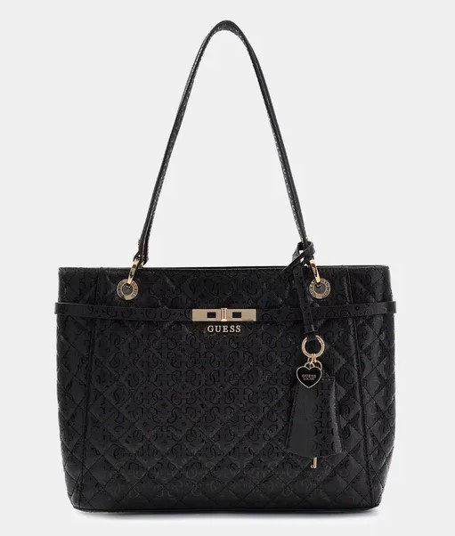 Kabelka má dvě ucha do ruky, ale vejde se i na rameno. Kabelka má zapínání na zip. Vnitřní prostor kabelky je rozdělený přepážkou na dvě části. Uvnitř je pevná podšívka s logem Guess, kapsa na zip a dvě otevřené kapsy. Za hlavní komorou je ještě další velká otevřená kapsa. Kovové komponenty mají světle zlatou barvu. U kabelky je ozdobný přívěšek. Ke kabelce je ochranný textilní pytlík s logem Guess.