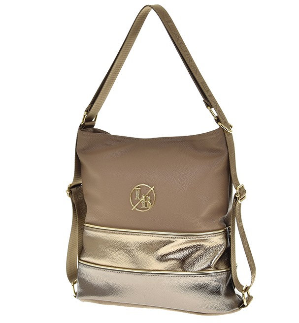 Nádherná kabelka má dvojitý, nastavitelný popruh a lze ji tak nosit v ruce, na rameni nebo jako batůžek. Na zadní straně je kapsa na zip. Kabelka má zapínání na zip. Uvnitř kabelky je černá podšívka, kapsa na zip a otevřená kapsa. Kovové komponenty mají zlatou barvu.