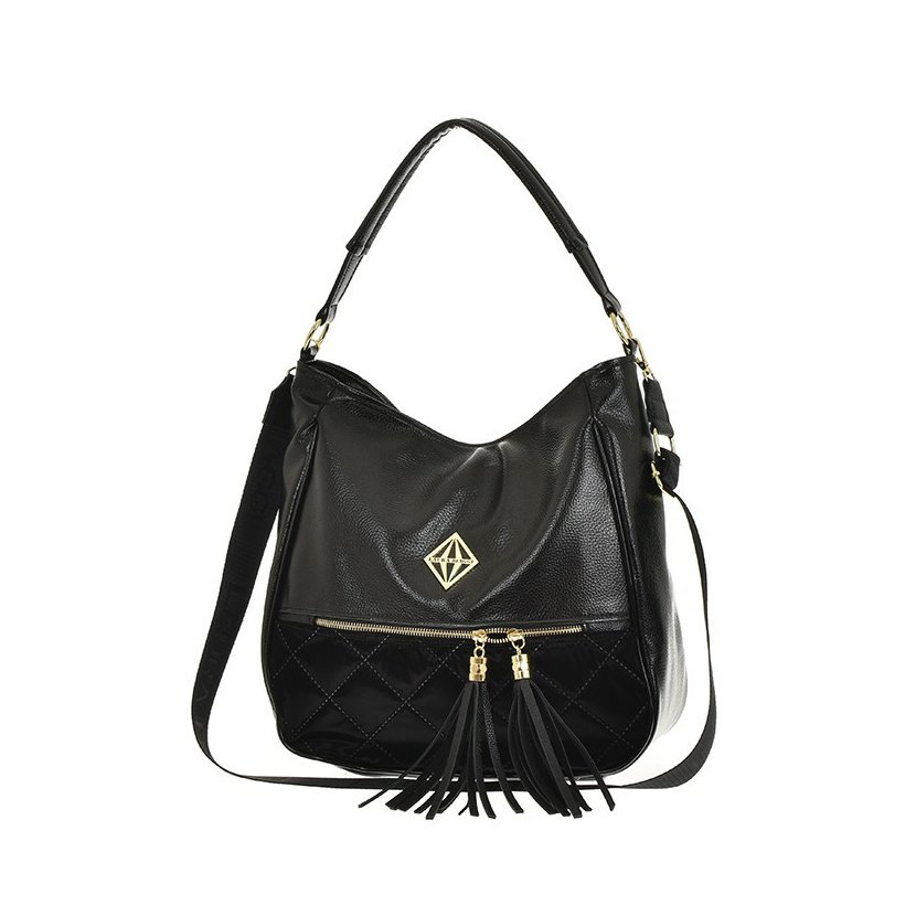 Nádherná kabelka má jedno ucho na rameno a dlouhý, odnímatelný a nastavitelný popruh přes rameno. Na zadní straně je kapsa na zip, na přední straně je ve spodní části další kapsa na zip. Kabelka má zapínání na zip. Uvnitř kabelky je černá podšívka, kapsa na zip a otevřená kapsa. Kovové komponenty mají zlatou barvu.