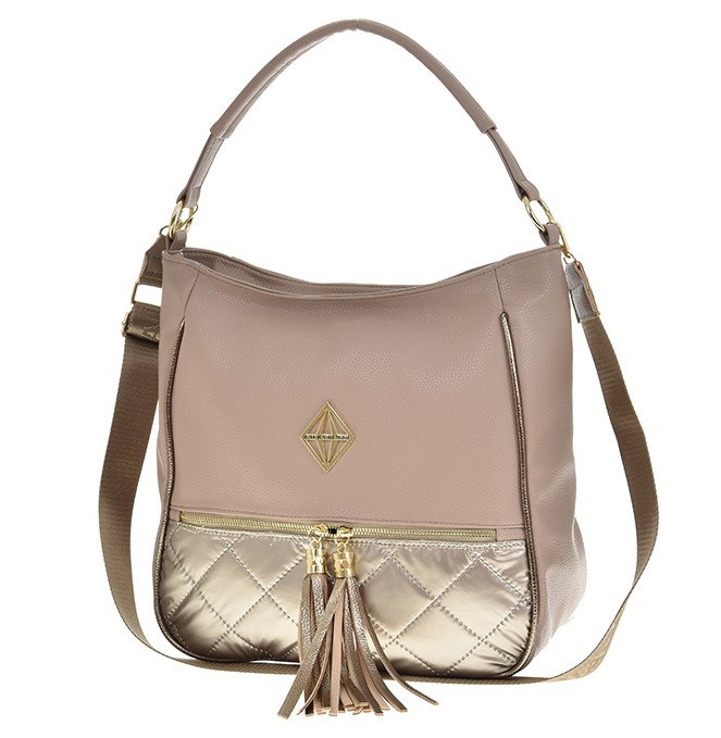 Nádherná kabelka má jedno ucho na rameno a dlouhý, odnímatelný a nastavitelný popruh přes rameno. Na zadní straně je kapsa na zip, na přední straně je ve spodní části další kapsa na zip. Kabelka má zapínání na zip. Uvnitř kabelky je černá podšívka, kapsa na zip a otevřená kapsa. Kovové komponenty mají zlatou barvu.