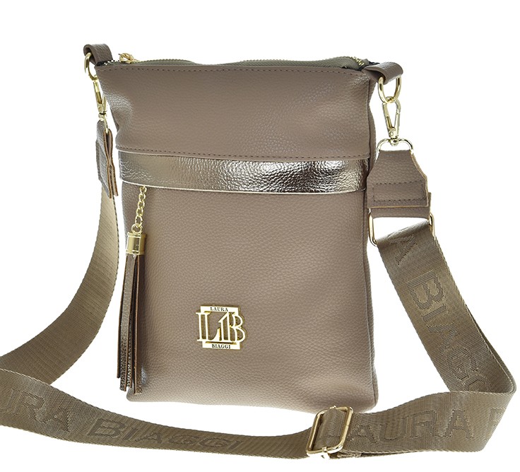 Kabelka má dlouhý, nastavitelný popruh přes rameno a lze ji tak nosit jako crossbody. Kabelka má na přední i zadní straně kapsy na zip. Kabelka má zapínání na zip. Uvnitř kabelky je černá podšívka, kapsa na zip a otevřená kapsa na mobil. Kovové komponenty mají zlatou barvu. Kabelka je velmi lehká.