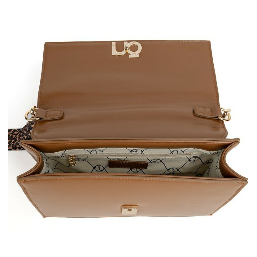 Kabelka má dlouhý, odnímatelný a nastavitelný popruh přes rameno. Kabelku tak lze nosit v ruce jako psaníčko nebo šikmo přes rameno jako crossbody. Kabelka má klopnu s kovovým otočným zapínáním. Uvnitř kabelky je kapsa na zip a otevřená kapsa. Kovové komponenty mají zlatou barvu. Kabelka je balená v ochranném pytlíku.