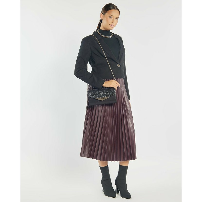 Společenská kabelka má odnímatelný řetízek přes rameno. Kabelku tak lze nosit v ruce nebo šikmo přes rameno jako crossbody. Kabelka má zapínání na magnet. Uvnitř kabelky je malá otevřená kapsička. Kovové komponenty mají zlatou barvu. Kabelka je balená v ochranném pytlíku.