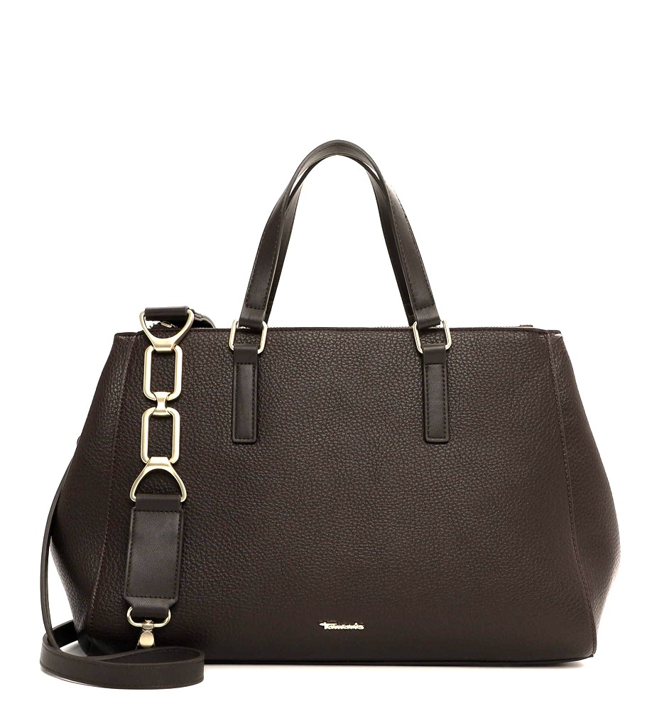 Větší kabelka má dvě ucha do ruky, dále kratší, široký a odnímatelný popruh na rameno a tenčí, odnímatelný a nastavitelný popruh přes rameno. Popruhy lze libovolně střídat. Kabelka má 5 samostatných komor. Prostřední (hlavní) komora a krajní komory, mají zapínání na zip. Zbylé dvě komory mají zapínání na magnet. Uvnitř hlavní komory je kapsa na zip a otevřená kapsa. Kabelka má pevnou podšívku. Kovové komponenty mají světle zlatou barvu. Kabelka má pevný tvar. Na přední straně je logo Tamaris.