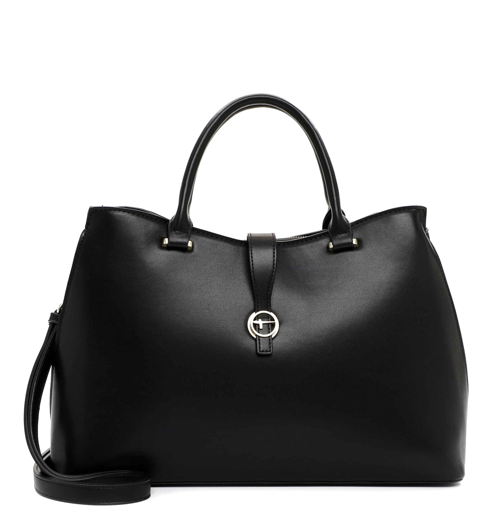 Větší kabelka ve stylu kufříku má dvě pevná ucha do ruky a dlouhý, odnímatelný a nastavitelný popruh přes rameno. Kabelka má tři samostatné komory. Prostřední (hlavní) komora má zapínání na zip. Přední komora má zapínání na magnet a pásek, zadní komora má zapínání na magnet. Hlavní komora má uprostřed přepážku, která rozděluje prostor uvnitř kabelka na dvě části. Přepážka má zapínání na zip a slouží jako kapsa. Uvnitř je dále pevná podšívka, kapsa na zip a otevřená kapsa. Kovové komponenty mají světle zlatou barvu. Kabelka má pevný tvar.