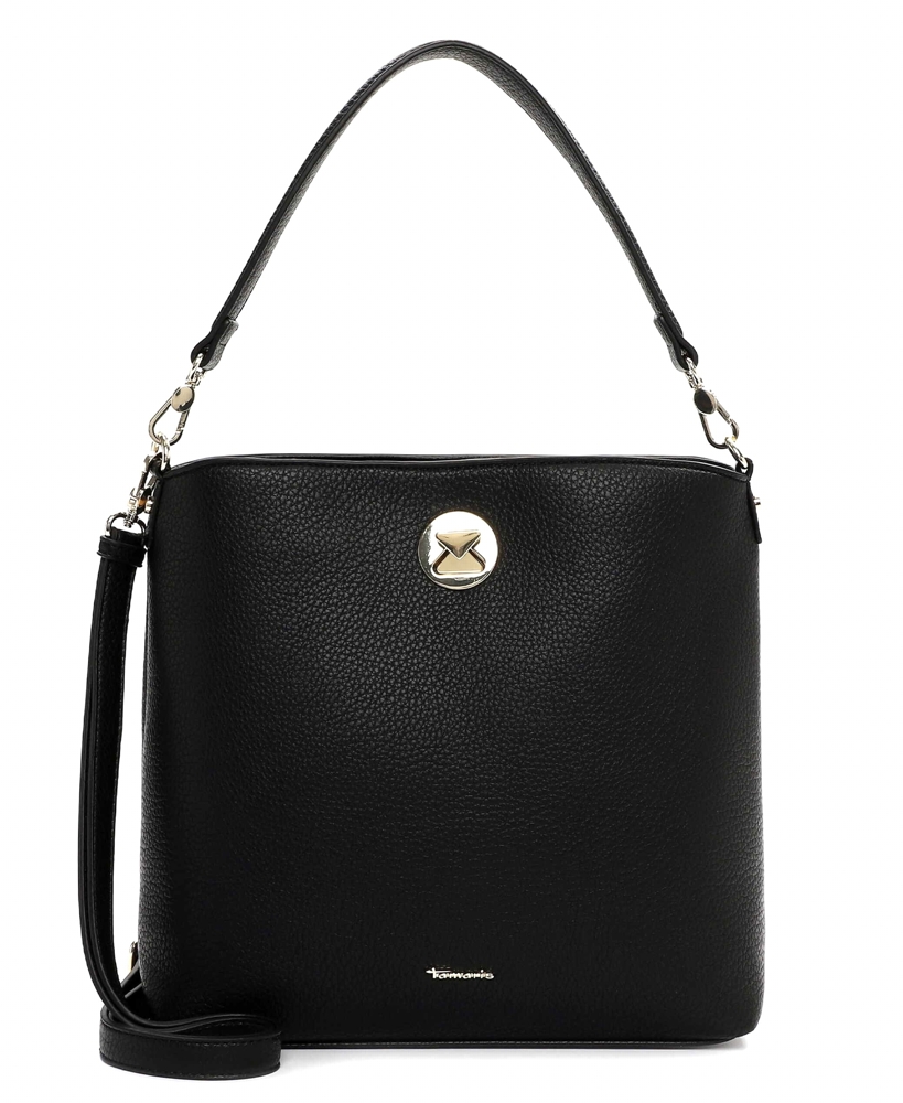 Kabelka má kratší a odnímatelný popruh na rameno a dlouhý, nastavitelný a odnímatelný popruh přes rameno. Kabelku tak lze nosit na rameni nebo šikmo přes rameno jako crossbody. Kabelka má tři samostatné komory. Přední komora má otočné kovové zapínání, prostřední komora má zapínání na zip a zadní komora má zapínání na magnet. V přední komoře je otevřená kapsa, v zadní komoře je kapsa na zip. Kovové komponenty mají světle zlatou barvu. Kabelka má pevný tvar. Na přední straně je logo Tamaris.