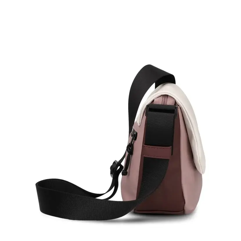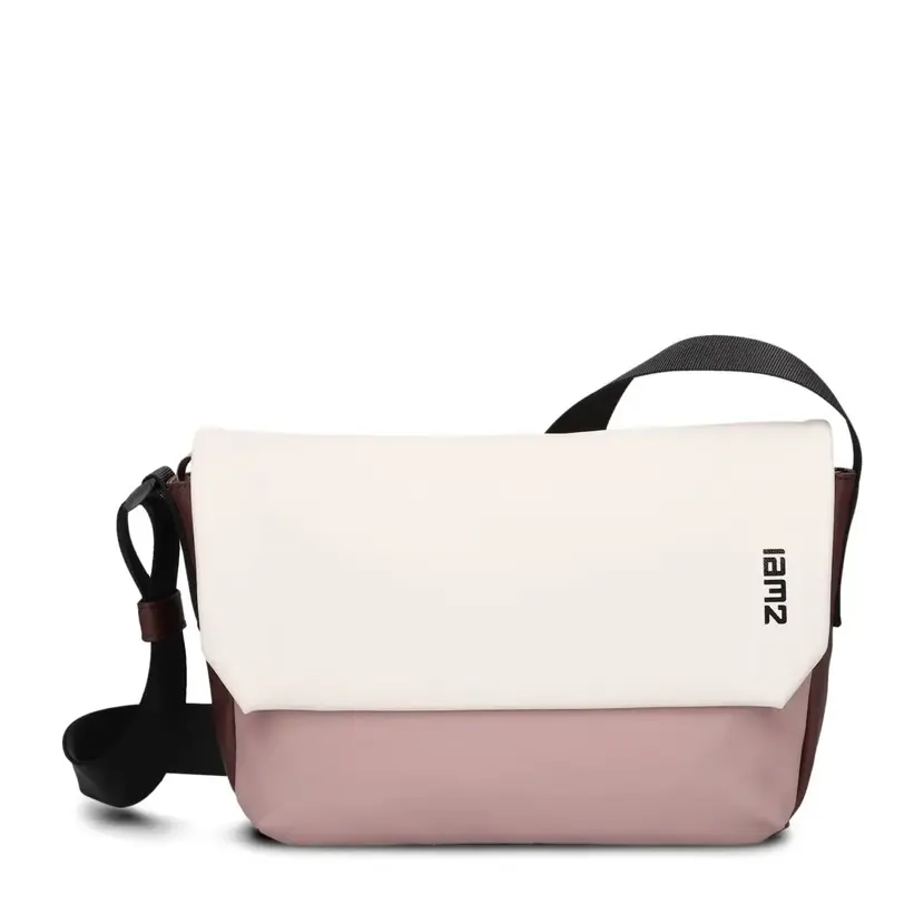 Taška ZWEI má dlouhý, textilní, nastavitelný popruh a lze ji tak nosit šikmo přes rameno jako crossbody. Na zadní straně je kapsa na zip. Horní část kabelky je překlopená dopředu a zapíná se na dva magnety skryté v materiálu. Pod klopnou vpředu je kapsa na zip. Uvnitř kapsy je šňůrka s karabinkou na klíče. Taška má zapínání na zip. Uvnitř tašky je velká otevřená kapsa a dvě menší otevřené kapsičky. Kovové komponenty mají černou barvu.
