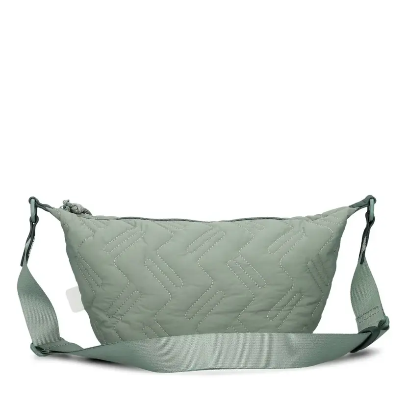 Hezká kabelka má široký, textilní a nastavitelný popruh a lze ji tak nosit šikmo přes rameno jako crossbody. Maximální délka popruhu je 135 cm. Kabelka má zapínání na zip. Uvnitř kabelky je pevná podšívka, kapsa na zip, dvě otevřené kapsy a šňůra s karabinkou na klíče. Dno kabelky je vyztužené. Kabelka je velmi lehká - váží pouze 250 gramů.