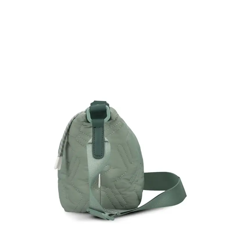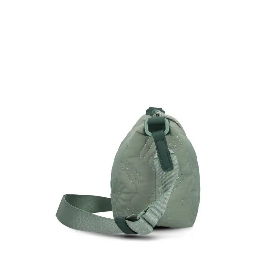 Kabelka je vyrobená z recyklovaného nylonu, získaného z rybářských lan a sítí z moře. Díky udržitelnému materiálu se při výrobě spotřebovalo podstatně méně vody, energie a fosilních paliv, což aktivně přispívá ke snížení ekologické stopy. Úchyty popruhu a dno kabelky jsou vyrobené z polyuretanu. Podšívka je z pevného polyesteru (PE). Pro čištění nedoporučujeme používat tekutá čistidla kvůli možnému zabarvení materiálu. Výrobek otírejte měkkým, bezbarvým, navlhčeným hadříkem.