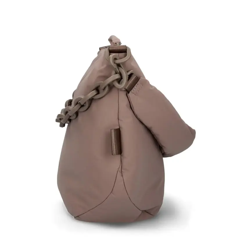 Moderní dámská kabelka kombinuje hravou lehkost s promyšlenou funkčností. Tato kabelka je vyrobena z vysoce kvalitního recyklovaného polyesteru a nabízí nejen elegantní design, ale také praktické funkce. Materiál kabelky je vycpaný, působí tak dojem "péřové bundy". Kabelka má kratší, odnímatelný popruh na rameno a dlouhý, odnímatelný a nastavitelný popruh přes rameno. Kabelku tak lze nosit buď na rameni nebo šikmo přes rameno jako crossbody.