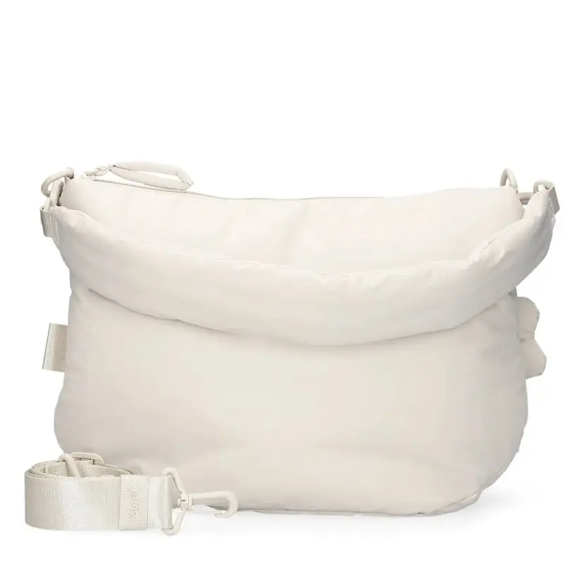 Moderní dámská kabelka kombinuje hravou lehkost s promyšlenou funkčností. Tato kabelka je vyrobena z vysoce kvalitního recyklovaného polyesteru a nabízí nejen elegantní design, ale také praktické funkce. Materiál kabelky je vycpaný, působí tak dojem "péřové bundy". Kabelka má kratší, odnímatelný popruh na rameno a dlouhý, odnímatelný a nastavitelný popruh přes rameno. Kabelku tak lze nosit buď na rameni nebo šikmo přes rameno jako crossbody.