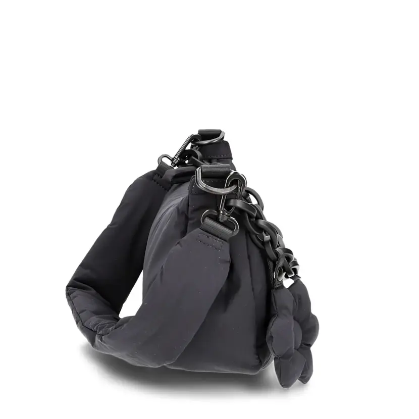 Moderní dámská kabelka kombinuje hravou lehkost s promyšlenou funkčností. Tato elegantní kabelka je vyrobena z vysoce kvalitního recyklovaného polyesteru. Materiál kabelky je vycpaný, působí tak dojem "péřové bundy". Kabelka má kratší, odnímatelný popruh na rameno a dlouhý, odnímatelný a nastavitelný popruh přes rameno. Kabelku tak lze nosit buď na rameni nebo šikmo přes rameno jako crossbody.