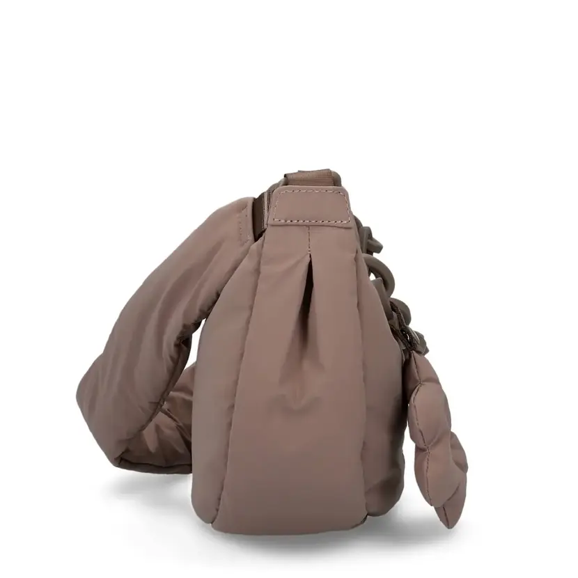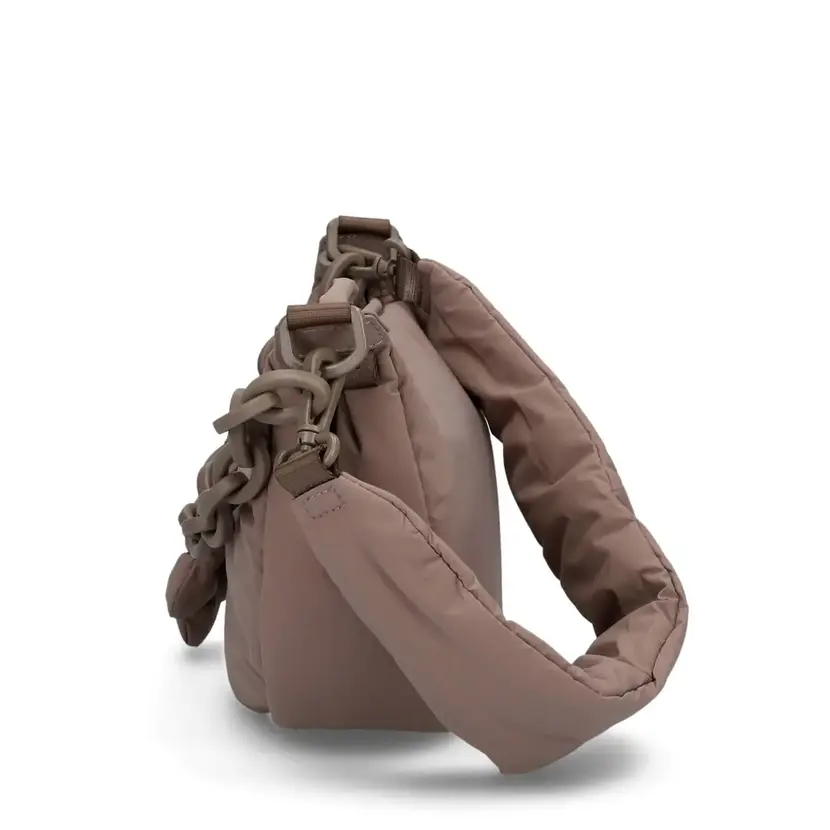 Moderní dámská kabelka kombinuje hravou lehkost s promyšlenou funkčností. Tato elegantní kabelka je vyrobena z vysoce kvalitního recyklovaného polyesteru. Materiál kabelky je vycpaný, působí tak dojem "péřové bundy". Kabelka má kratší, odnímatelný popruh na rameno a dlouhý, odnímatelný a nastavitelný popruh přes rameno. Kabelku tak lze nosit buď na rameni nebo šikmo přes rameno jako crossbody.