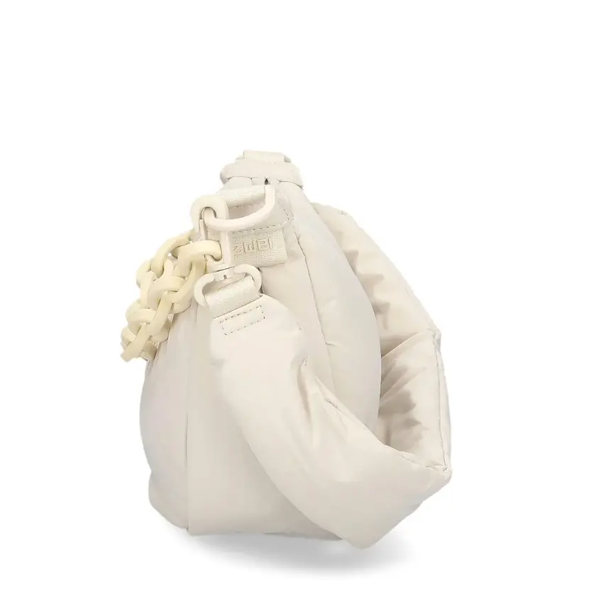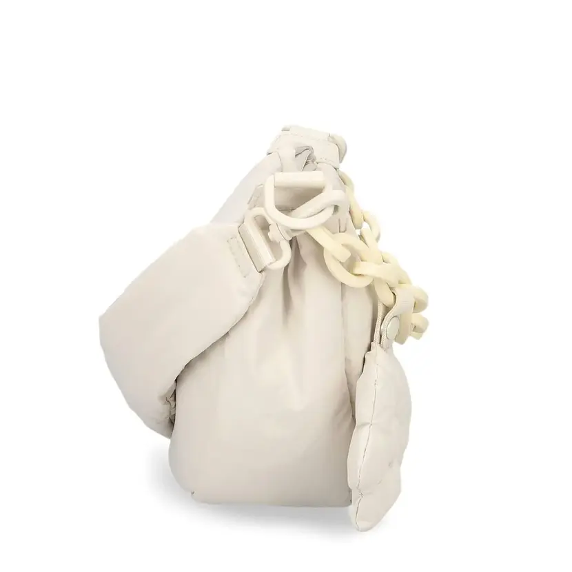 Moderní dámská kabelka kombinuje hravou lehkost s promyšlenou funkčností. Tato elegantní kabelka je vyrobena z vysoce kvalitního recyklovaného polyesteru. Materiál kabelky je vycpaný, působí tak dojem "péřové bundy". Kabelka má kratší, odnímatelný popruh na rameno a dlouhý, odnímatelný a nastavitelný popruh přes rameno. Kabelku tak lze nosit buď na rameni nebo šikmo přes rameno jako crossbody.