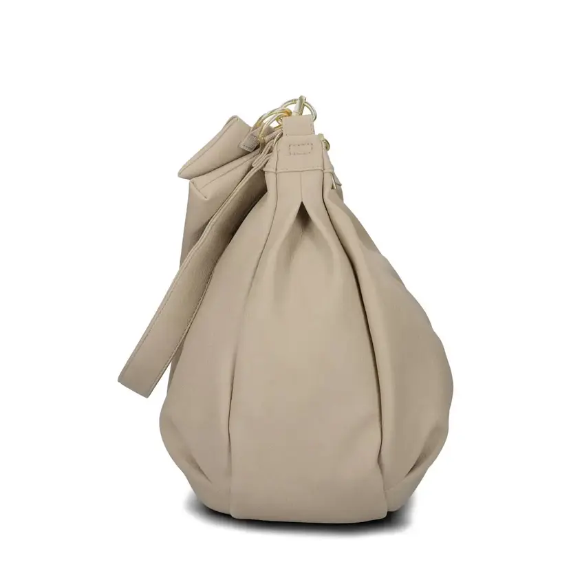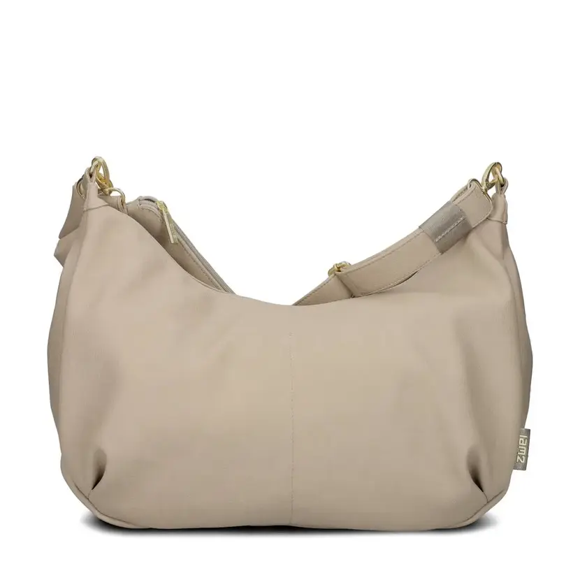 Velká kabelka ve tvaru lodičky má dlouhý, nastavitelný a odnímatelný popruh. Kabelku tak lze nosit šikmo přes rameno jako crossbody. Kabelka má zapínání na zip. Uvnitř kabelky jsou dvě velké, síťované a otevřené kapsy, dále odnímatelná etue se zapínáním na zip o velikosti 19 x 13 cm, malá a odnímatelná etue se zapínáním na druk o velikosti 10 x 7 cm a odnímatelný přívěšek na klíče. Kabelka nemá podšívku. Na dně kabelky jsou v materiálu schované dva magnety, které zmenší šířku kabelky. Kovové komponenty mají zlatou barvu.