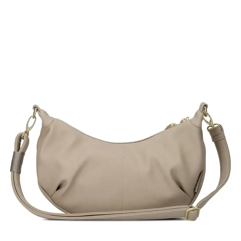 Kabelka ve tvaru lodičky má dlouhý, nastavitelný a odnímatelný popruh. Kabelku tak lze nosit šikmo přes rameno jako crossbody. Kabelka má zapínání na zip. Uvnitř kabelky jsou dvě síťované, otevřené kapsy a odnímatelný přívěšek na klíče. Kabelka nemá podšívku. Kovové komponenty mají stříbrnou barvu.