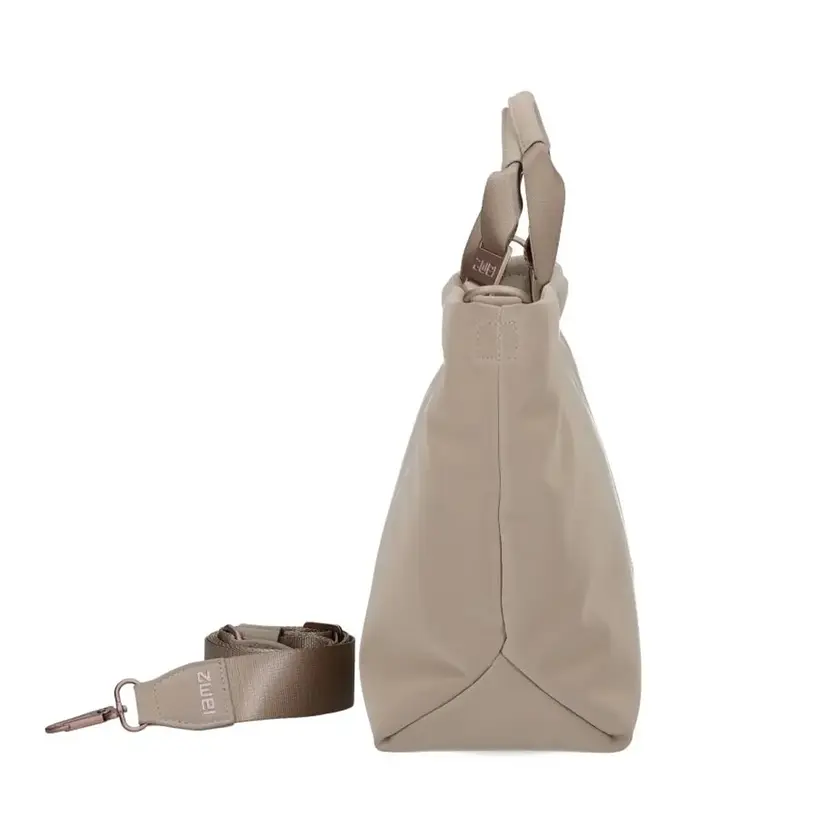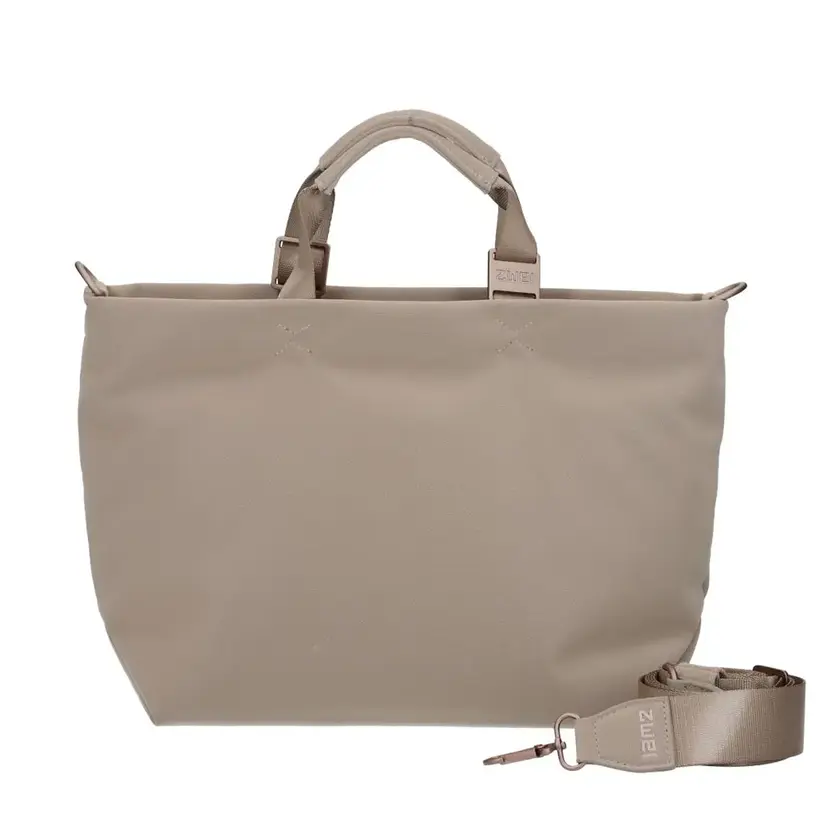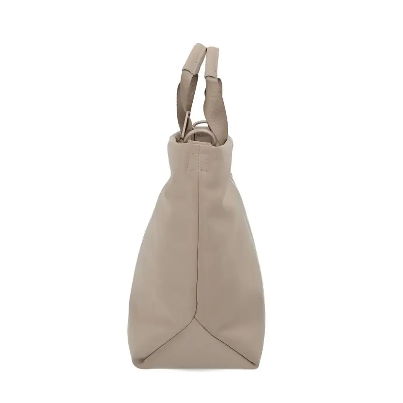 Moderní dámská kabelka, která kombinuje minimalistický design s maximální funkčností. Stylová kabelka je vyrobená z měkké a hladké syntetické kůže. Materiál kabelky je vycpaný, takže působí dojmem "péřové bundy". Kabelka má dvě krátká ucha do ruky a dlouhý, odnímatelný a nastavitelný popruh přes rameno s futuristickými karabinami. Kabelka má zapínání na zip. Uvnitř kabelky je pevná podšívka, kapsa na zip a dvě otevřené kapsy na mobilní telefony. Kabelka je velmi lehká, váží pouze 470 gramů.