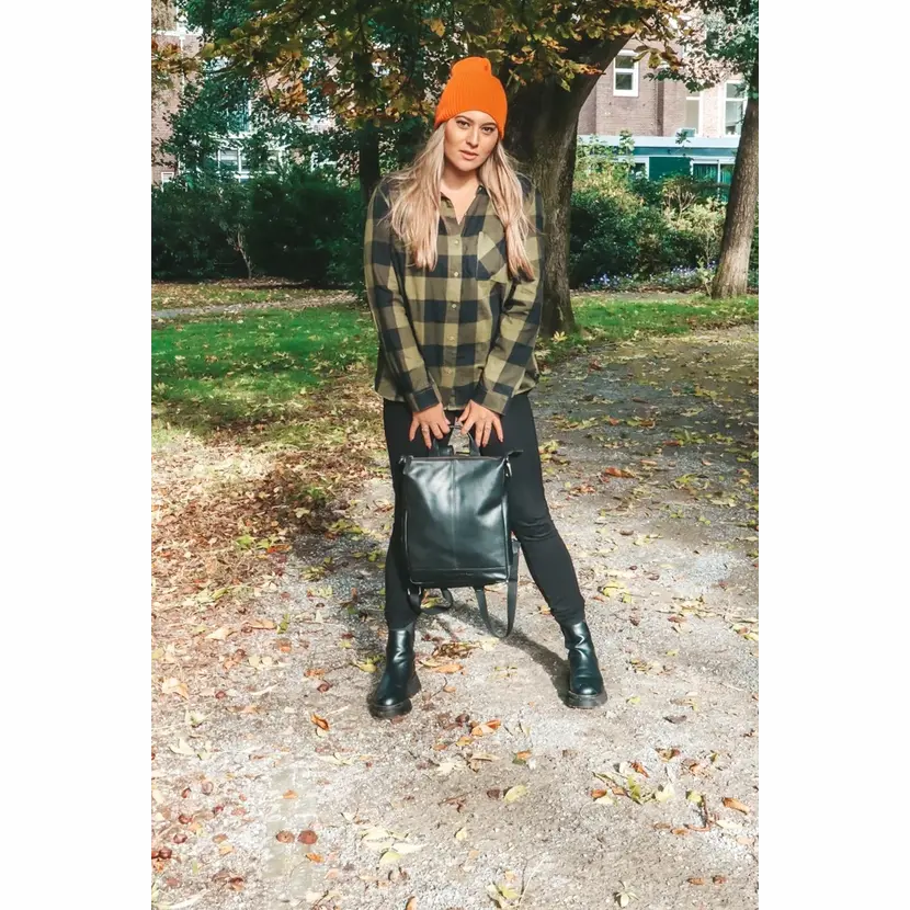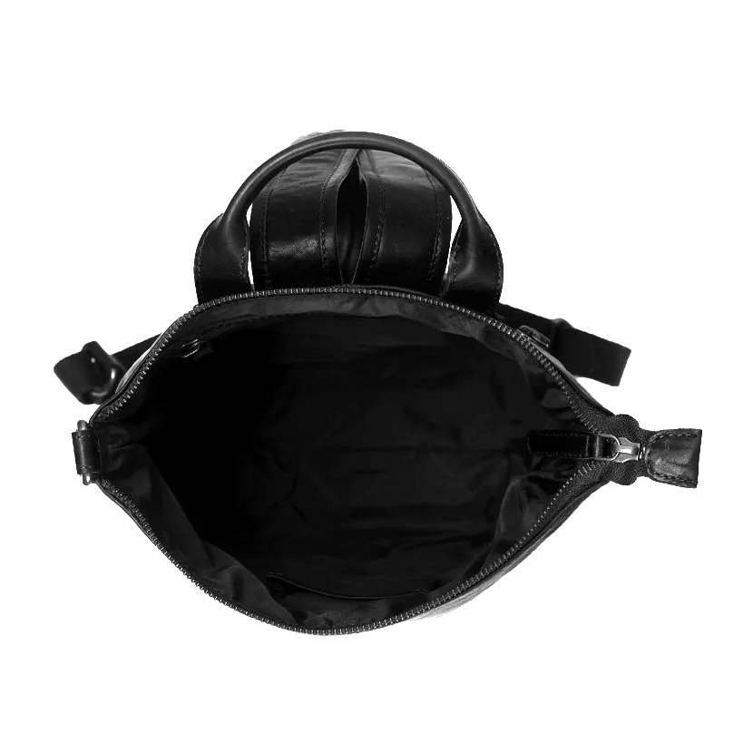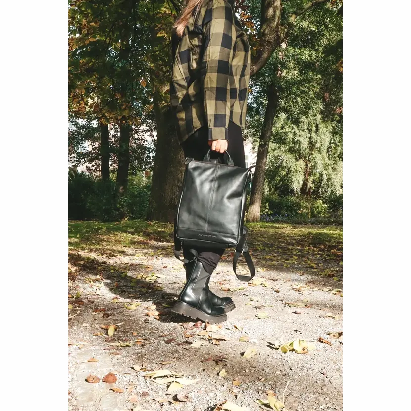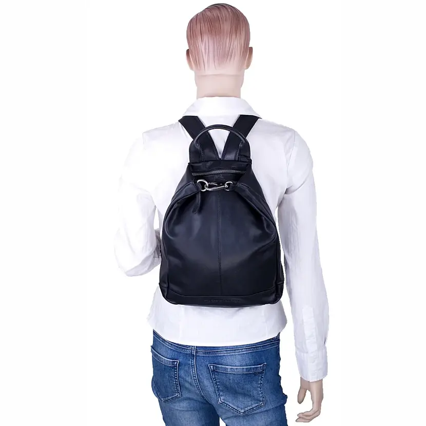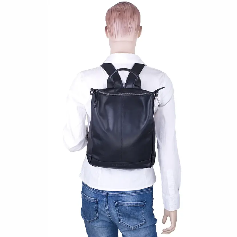 Kožený batoh do města má jedno ucho do ruky a nastavitelné popruhy na záda. Na zadní straně je kapsa na zip. Batoh má zapínání na zip. Uvnitř batohu je černá podšívka, kapsa na zip a otevřená kapsička na mobil. V horní části batohu je karabinka, kterou je možné zapnout do kovového očka a změnit tím tvar batohu. Do batohu se vejdou dokumenty formátu A4. Součástí dodávky je plátěná taška pro uložení batohu.