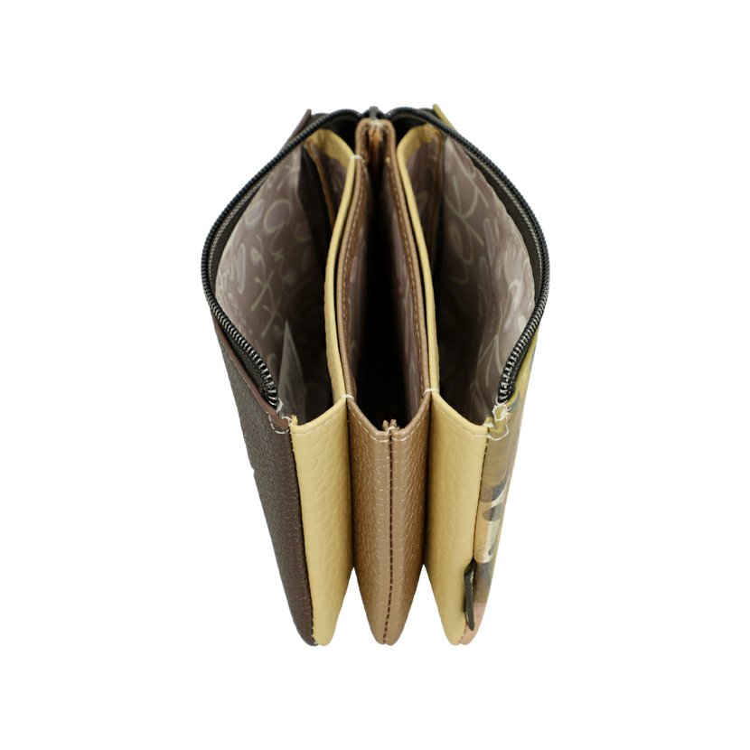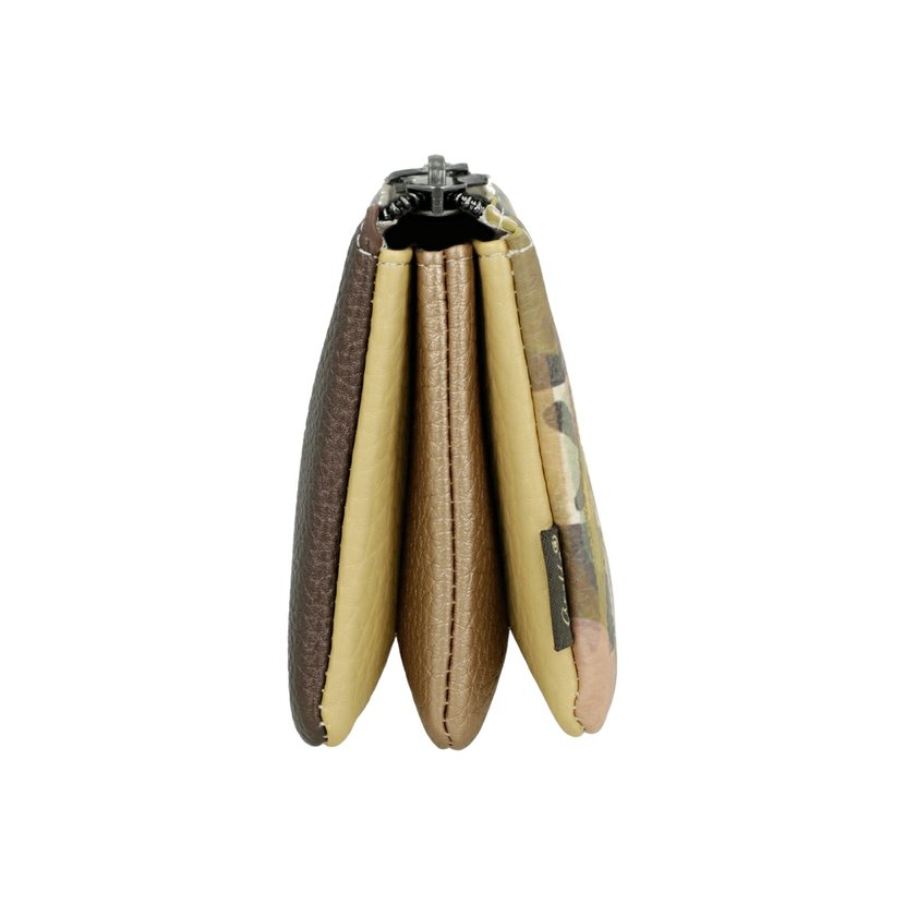 Malá peněženka má tři samostatné kapsy a zapínání na zip.