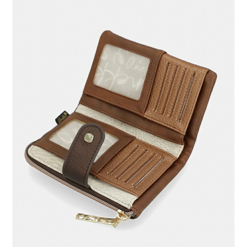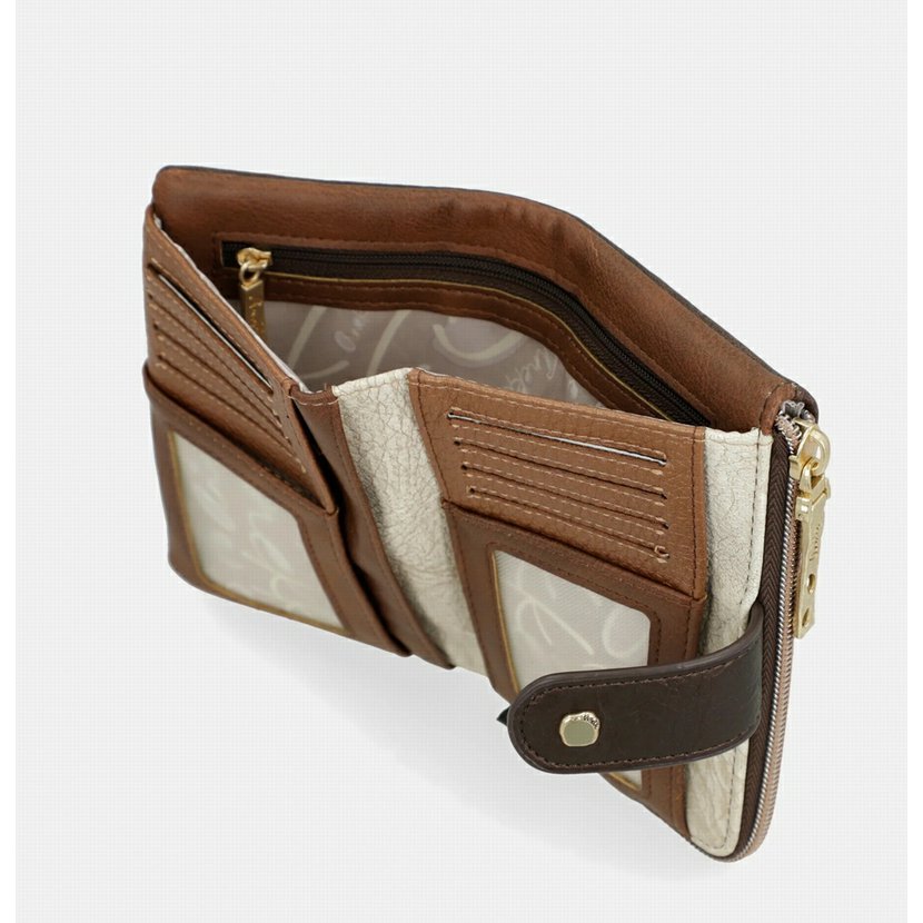 Peněženka má dva oddíly. Oddíl na mince se zapíná na zip. Oddíl na bankovky a karty se zapíná na druk. Uvnitř tohoto oddílu je prostor na bankovky, tři přihrádky na doklady nebo papíry, 10 záložek na karty a skrytá kapsička na zip. Peněženku dodáváme v originální krabičce.