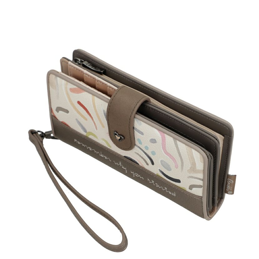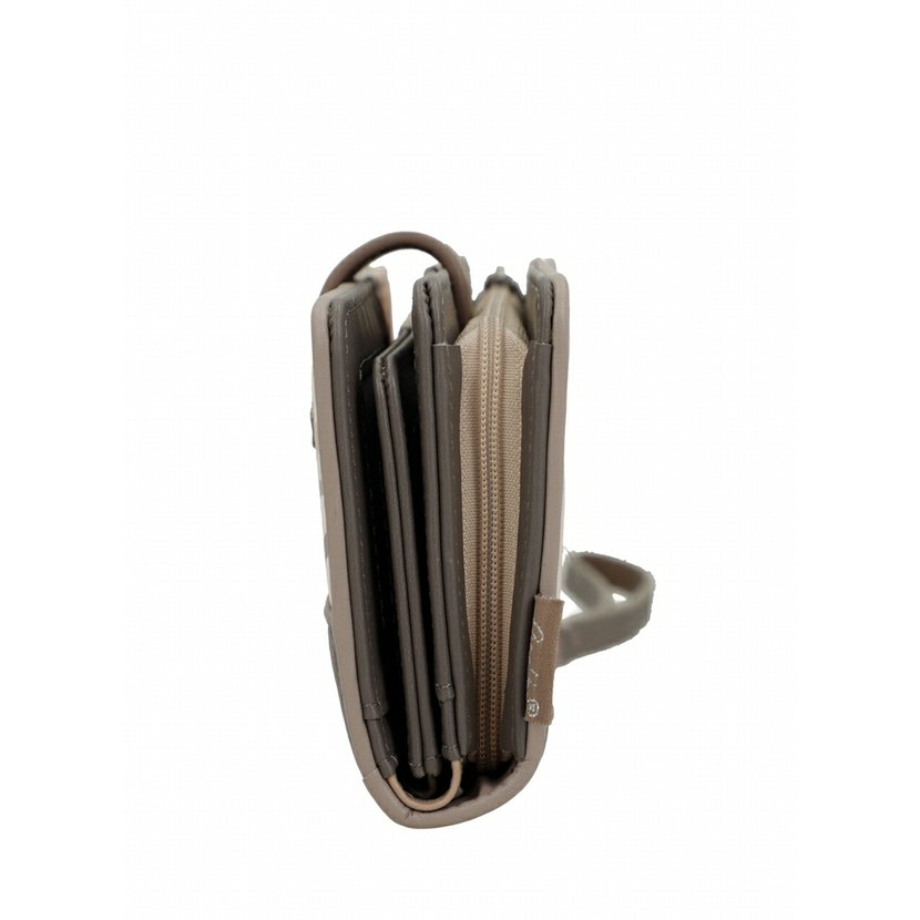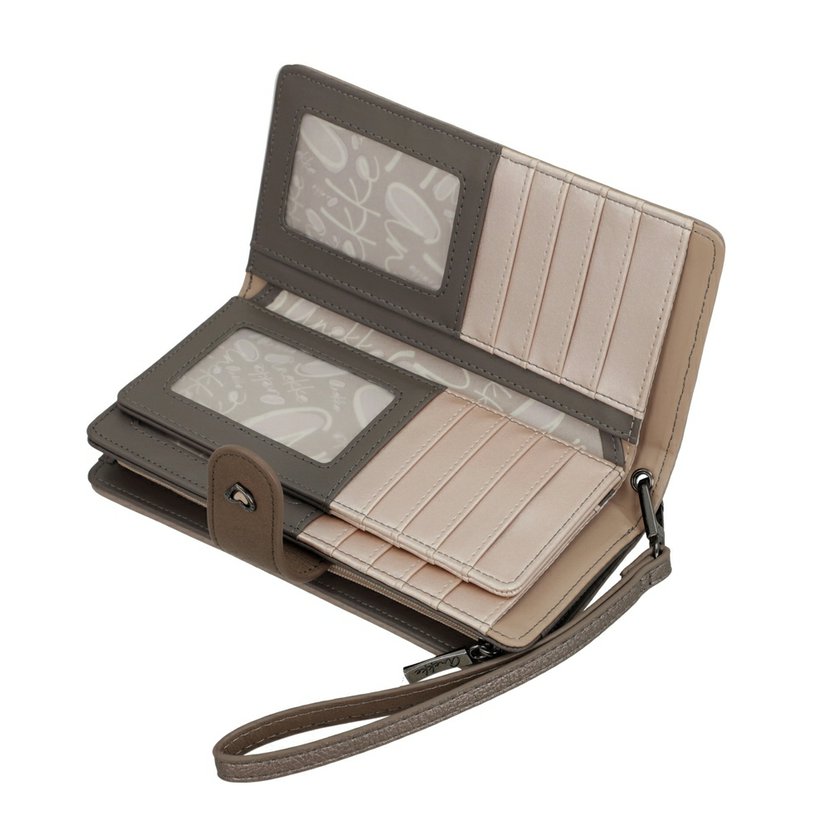 Větší peněženka má dva oddíly. Oddíl na mince se zapíná na zip. Oddíl na bankovky a karty se zapíná na jeden ze dvou druků (podle naplněnosti peněženky). Uvnitř tohoto oddílu je přihrádka na bankovky, 6 přihrádek na doklady nebo papíry a 20 záložek na karty (4 záložky jsou průhledné). U peněženky je odnímatelné poutko na zápěstí. Peněženku dodáváme v originální krabičce.